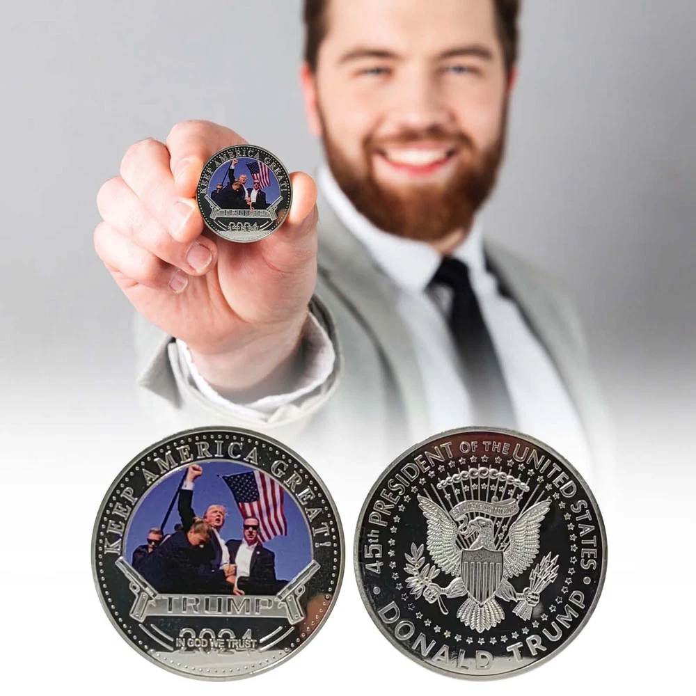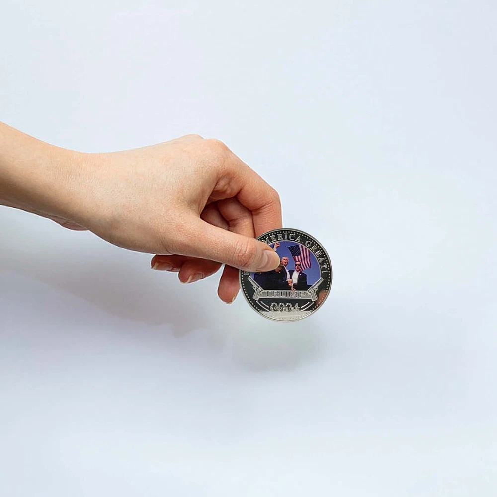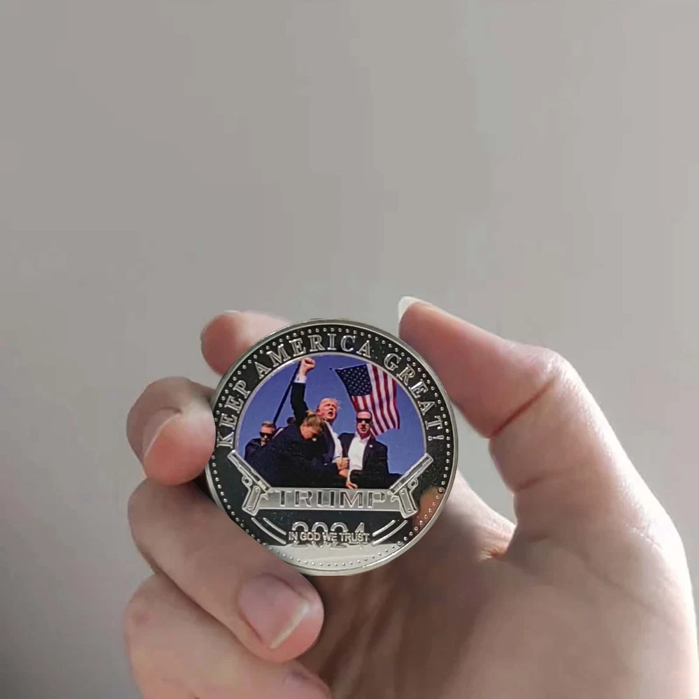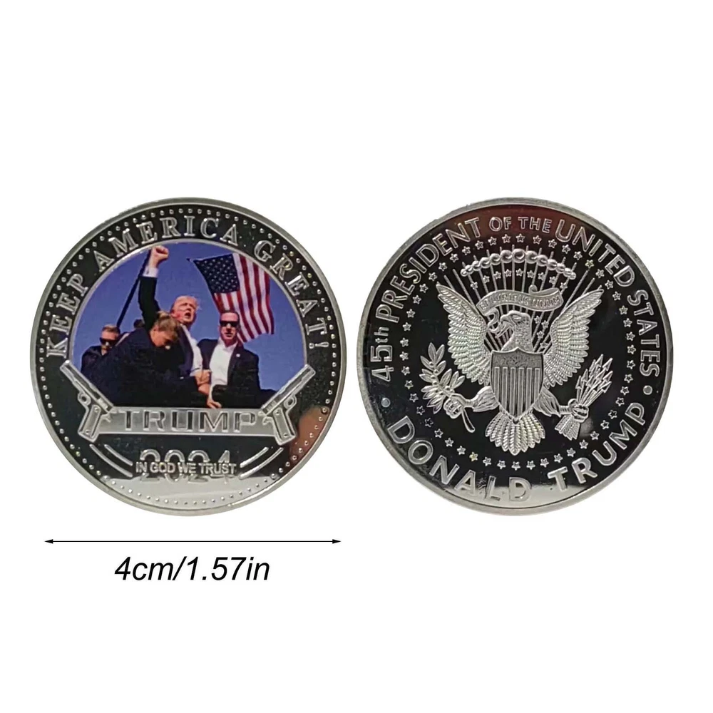 Fight Shooting 2024 President Donald Trump Assassination Commemorative Coin Large orders please contact us by eBay message for a discount. Features: Brand new and high quality. High precision manufacturing and top quality. Each coin is 1.57 inches (40mm) and 0.3 centimeters thick, comes in a fit to coin packaging for long-term protection. Specification: Material:Metal Diameter: 40mm/1.57in Thickness: 3mm/0.12in Color: as show as picture Note: May be damaged during transportation, be careful before placing the order If you mind it, please understand. Please allow 1-3mm (0.04-0.118") difference due to manual measurement and slight color variation for different display setting. Package Includes: 1 x Commemorative Coin