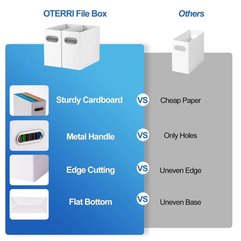 Oterri File Organizer, Small Storage Box, Cardboard File Folder Organizer, Collapsible File Box, Hanging File Organizer for Letter Size, Portable File Box with Handle, Only Box(White,2 Packs) Well-made Material: Letter file boxes are made of upgraded heavy cardboard, durable and reusable. Metal handle design, easy to carry.(Folder not included) Letter Size: The document box is 12.2x5.3x9.8 inches, designed specifically for letter (not including folders), but is not limited to folders, but can also store notebooks, magazines and other paper documents. Compact design, categorize items. Easy to Install: Hanging file organizers packaging comes with a manual that can be folded in just 30 seconds.Simply fold when not in use to save space. Coverless design for easy label identification, document positioning and improved efficiency. Widely Used: Small storage box can be placed on your desktop for use to organize your desk and keep your desk neat and organized. It is good assistant for hanging storage folders, suitable for office, home and school. Good After-sales Service: Oterri is committed to giving our customers a good shopping experience, focusing on the storage products market.Your suggestions will have a great impact on the upgrade of our products. Shipping We offer FREE shipping on all orders! We ship within Three business days of payment, usually sooner. We use a selection of shipping services such as UPS, FedEx, USPS etc. We only ship to the lower 48 states, no APO/FPO addresses or PO Boxes allowed. Local pickups and combined shipping options are not provided at this time. Return You can return a product for up to 30 days from the date you purchased it. Any product you return must be in the same condition you received it and in the original packaging. Please keep the receipt. Payment We accept payment by any of the following methods: PayPal Please pay as soon as possible after winning an auction, as that will allow us to post your item to you sooner! Feedback Customer satisfaction is very important to us. If you have any problem with your order, please contact us and we will do our best to make you satisfied. Contact Us If you have any queries, please contact us via ebay. We usually respond within 24 hours on weekdays. Please visit our eBay store to check out other items for sale! Thank you for shopping at our store.