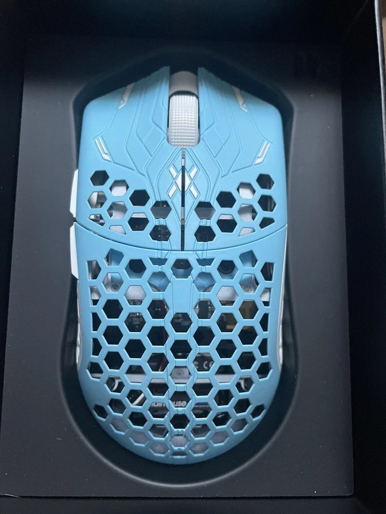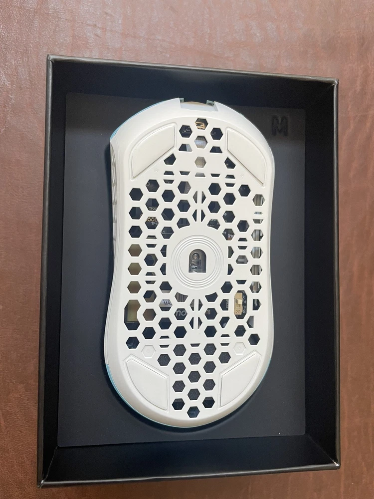 Basically new with no stains, opened and used once then put back in box, still have original grips unopened, and factory seal. Weighs only 35 grams one of the lowest on the market 121.3mm Length x 56.8mm Grip Width x 37mm Height Up to 1000, 2000, 4000, and 8000Hz polling rate Unique to the Pro Series is a custom specced superbinned Huano Blueshell switch Uses PixArt's flagship 3395 sensor Other tech specs can be found on the Final mouse website Will be shipped asap!