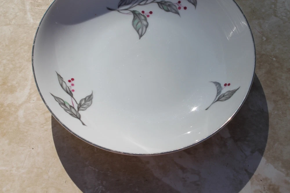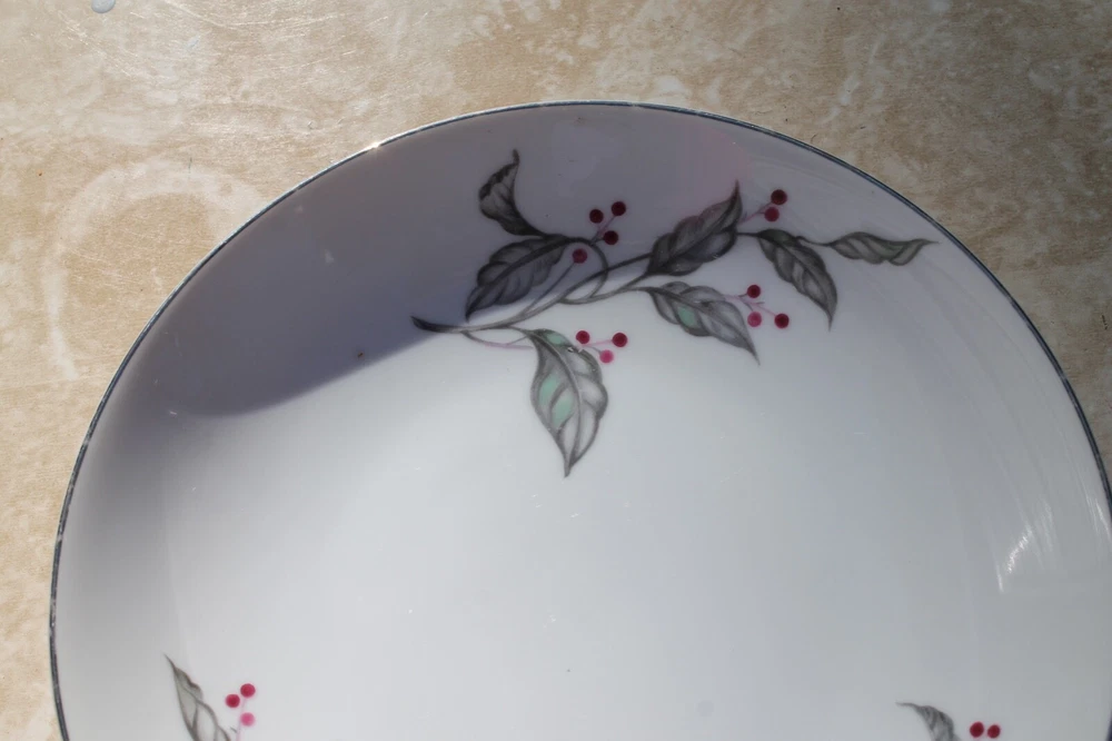 Fine China Soup Salad Bowl, CHOKE CHERRY with Silver Band Trim, 7.5” Pre-owned Excellent; collectible! Free ship~mainland America $13.95 Pre-owned excellent condition Fine China Soup Salad Bowl, CHOKE CHERRY with Silver Band Trim, 7.5”, some wear to silver band trim, no cracks chips dings or dongs, simplicity pattern at its best, clean, please review photos, selling AS IS. Approx.: 7.5” diameter, 1.5” tall *[A019dish-47] Smoke~free & pet~free home. ?'s~please message via eBay. We ship every day the post office is open! Please pay at appointed time so we can ship ASAP! Free shipping to mainland America~International shipping via eBay GSP. Most items ship via Priority~some boots, clothing, rubber stamps, shoes and/or fabric items ship via 1st Class~some books, movies, paper items ship via Media mail. Insurance & tracking on almost all shipments ( why we prefer Priority ) ; U.S.A. totals over $150 will be sent with signature confirmation. We may use clean recycled packing materials~we view this as wise stewardship~if this offends, please notify upon payment. Our items are packed with appreciation for our customers & shipping care~we want you to come back. Feedback is appreciated & graciously returned! Would you be so kind to visit our store and/or sign up for our newsletter and/or add us to your favorites? We acknowledge our lack of skill with photography~please overlook our mistakes. We aren't experts at anything~if you can teach us something about our items~please do so, we welcome your input. Thank you for considering our listings & for your patronage! Track Page Views With Auctiva's FREE Counter