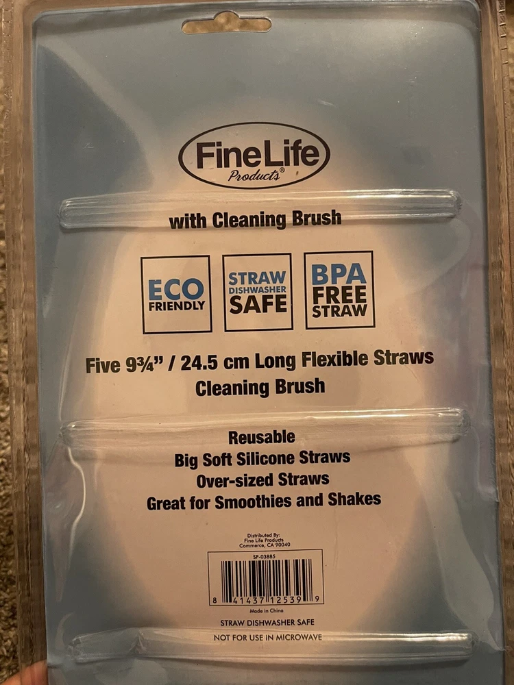 FineLife Big Silicone Straws w/ Cleaning Straws Neon Rainbow Summer Reusable Eco. Box is sealed but has a dent on packaging. Please see last picture. Please message me with any questions. Thank you MISCA