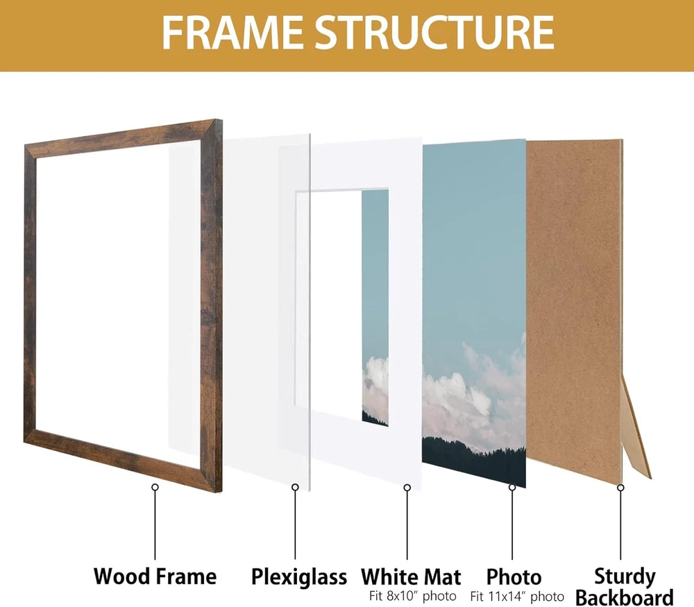 Store New Arrivals Add to Favorite View Feedback Contact Fire Brown 11X14 Picture Frame - Can Display Photo 8X10 with Mat, Engineered Wood Frame with Shatterproof Plexiglass, Set of 2 Description Item Shape Rectangular Unit Count 2.0 Count Style Rustic Number of Items 2 Orientation Vertical, Horizontal Mounting Type Wall Mount Color Fire Brown Target Audience Unisex Adult Product Dimensions 15"L x 12"W Shape Rectangular Frame Material Engineered Wood Occasion Type Mother's Day, Grandparents Day Occasion Mother's Day, Grandparents Day Finish Types Distressed Frame Type Single Picture Frame Finish Type Distressed Cover Material Glass Item Dimensions L x W 15"L x 12"W Rustic, Worn-Out Allure: This expertly crafted wooden frame collection boasts a striking distressed finish reminiscent of a cherished antique, perfectly harmonizing with a wide range of interior styles Beveled Mat: This 11x14 frame fits an 8x10 picture with the mat, or 11x14 picture/photo/print without the mat. The mat opening is designed to be 0.5 inches smaller than the photo itself (7.5"x9.5") in order to securely hold it in place Vertical or Horizontal Display: The sawtooth hanging hardware is already installed on the back for both portrait or landscape style pictures. Hang your pictures using a design that accentuates your decorating style to make it easier to place your photos in a perfect collection on the wall Durable for Use: The highly transparent plexiglass and sturdy backboard can keep your photos in place and load your memories easily, quickly and securely. Protect your precious memory for a long time Timeless Elegance for Every Celebration: Ideal Gift for Mom, Dad, Grandparents, Weddings, Birthdays, Valentine's Day & Anniversaries Create the photographic gallery wall of your dreams with our picture frame set. Each frame showcases a different size and various rustic style, making it the perfect pick for modern farmhouse-inspired ensembles. Crafted from MDF and glass with a backboard, each frame is ready to snap in a photo of your choice, and can be placed horizontally or vertically depending on your design preferences. ABOUT US We offer the best prices around on high quality products. Our E-store includes media such as books, movies, music and games while offering electronics, toys, sporting apparel, clothing, tools, general home, garden items and more. SHIPPING We are always working hard to ensure your package arrives as soon as possible. Please understand that some factors like weather, high postal traffic, and the performance of shipping companies are outside of our control. We offer free shipping to the lower 48 states and ship within 2 business days of payment, usually sooner. We do not accept P.O. Boxes. Please provide a physical address. For shipping outside of the continental USA, we only use eBay's Global Shipping Program.The item is shipped to KY and then sent to the rest of the world. International customers are responsible for all duties and taxes. Continue to check out in order to calculate costs for shipping the item to your country. Messages regarding eBay's Global Shipping Program MUST be directed at eBay EXCLUSIVELY. RETURNS We offer a 30-Day Return Policy on items which you are not completely satisfied with. You have the option for a full-refund or an exchange of the item. No returns are available on items shipped outside of the USA. PAYMENT We accept PayPal. CONTACT US This page content is yet to come Please ad us to your favorite seller and visit again later Thank You CUSTOMER SATISFACTION We try our very best to make sure every customer is completely satisfied. If there's a problem, message us! We're happy to help. WE ACCEPT Copyright © 2021 AutoDS. | All Rights Reserved
