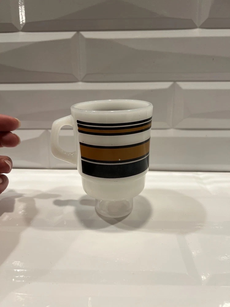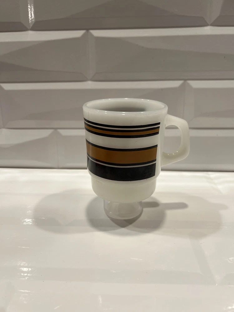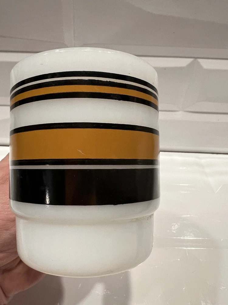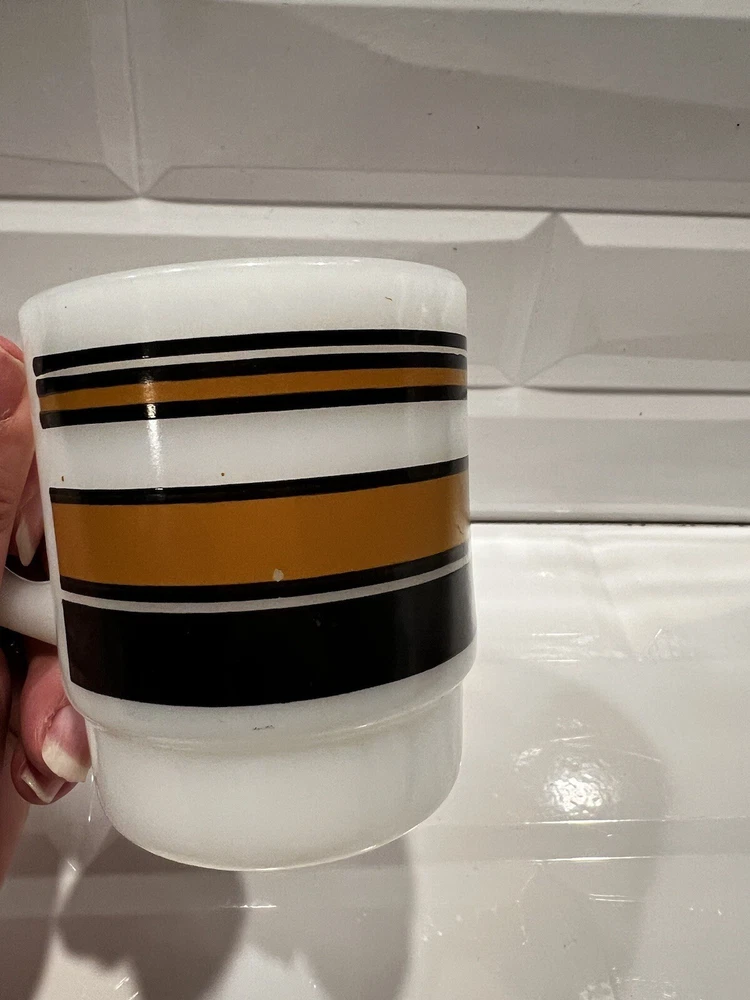 Fire King Ware Anchor Hocking Coffee Tea Mug Cup Vintage Stripe Brown black stripes.good condition and quality, some minor paint loss, see pictures