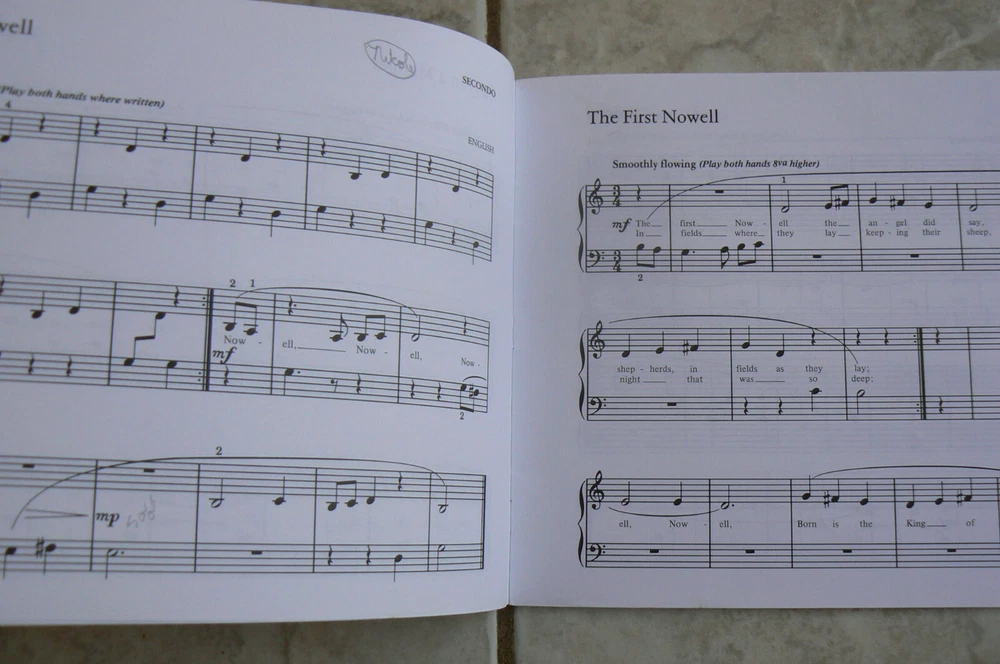This listing is for a 1987 piano book titled First Favorite CHRISTMAS DUETS 15 Carols for Beginning Pianists Arranged by Lynn Freeman Olson " Find a partner and play the Christmas music that everyone loves. These fun and simple Christmas duets are enjoyable for both players since the melody moves from one part to another. " This 31-page softcover book is in very good condition with all pages crisp and sturdily bound; four of the pages have some notations on them. Please see the picture of the table of contents for the songs included here. You won't be disappointed! ~~~~~~~~~~~~ I'm listing MANY more books and other items. I'm happy to combine shipping. ~~~~~~~~~~~~~~~~~~~~~~~~~~~~ I normally mail ON the day I receive payment if it's received before 3 p.m. central time, and the next day if it's later than 3. Please take a look at my other listings; I'm listing many school books (and other items) and am happy to combine shipping! Items from smoke-free, pet-free home. Thanks so much for your time! Before leaving your feedback, if for any reason you feel I did not deserve or earn 5 stars in each category, please let me have the opportunity to make it right. I want every transaction to be 5-star worthy! Thanks so much! :)