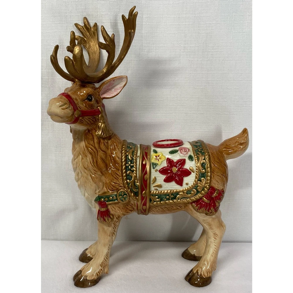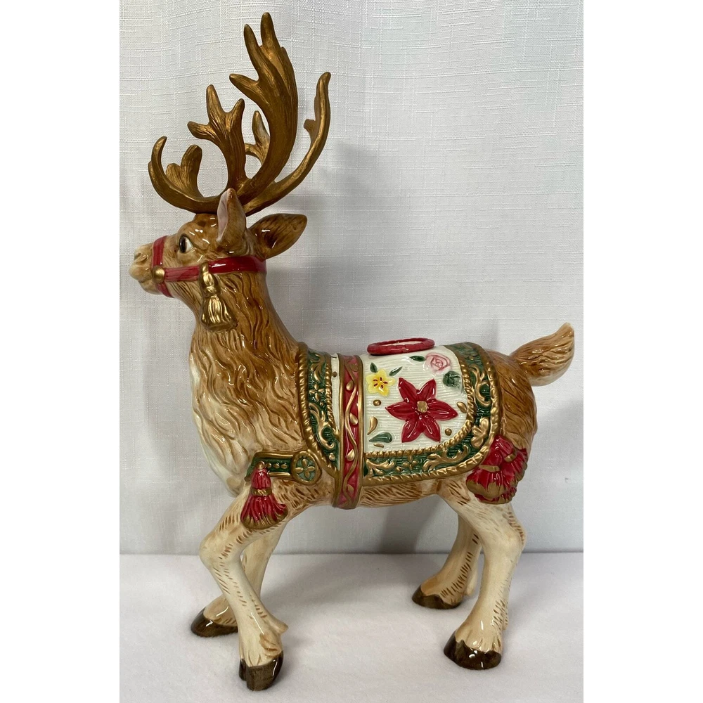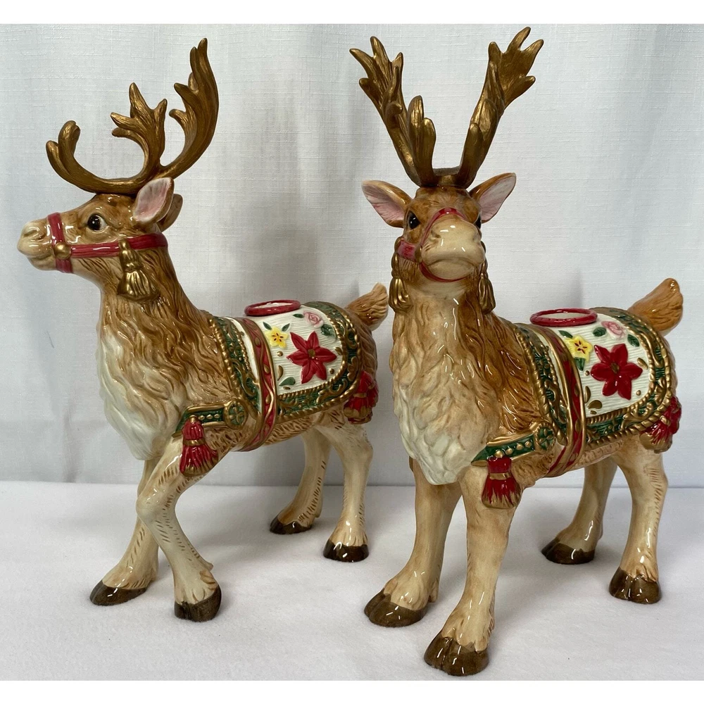 Add a touch of holiday magic to your home with this beautiful candle holder pair from Fitz & Floyd. Featuring a charming reindeer design, these candle holders are perfect for creating a cozy and inviting atmosphere during the festive season. The multicolor design adds a pop of color to any room, making them a great addition to your holiday decor. Crafted with high-quality materials, these candle holders are sure to last for years to come. They are perfect for use in any type of candle, making them a versatile addition to your home decor. Whether you're looking to add some ambiance to your dinner table or simply want to create a cozy atmosphere in your living room, these Fitz & Floyd candle holders are the perfect choice.