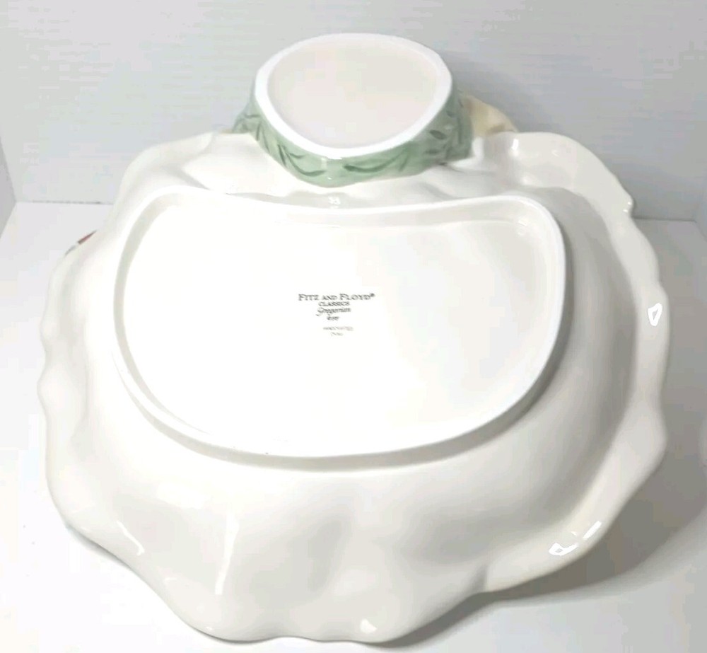 This Fitz and Floyd Gregorian Santa Christmas Classics Centerpiece Serving Platter is a must-have for any holiday collector. The beige color and intricate design make it a beautiful addition to any table setting. Made of ceramic and porcelain, this serving platter is durable and will last for years to come. With a brand name of Fitz & Floyd, you know that this serving platter is of high quality. It was manufactured in China in 1991 and is part of the holiday collectibles category. This item is perfect for those who enjoy collecting unique pieces during the holiday season. Add it to your collection today! In the original box.