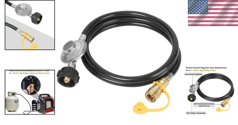 Flexible 6-Foot Propane Hose with Solid Brass Fittings for Big Buddy Heater Use ‹ › ‹ › ‹ › ‹ › ‹ › ‹ › ‹ › ‹ › ‹ › Flexible 6-Foot Propane Hose Designed specifically for use with the Mr. Heater Big Buddy Heater, this flexible propane hose is an essential accessory for any outdoor or indoor heating experience. Features: Compatible with Mr. Heater Big Buddy Heater models MH18B & F274830. No need for filters – this direct connect hose simplifies your propane connection. 3/8” Quick Connect & QCC1 connection (Type 1) for seamless integration with your propane system. Female quick connect fitting designed to fit standard 3/8 male quick connect (SAE fitting). Compatible with 5lb-40lb propane tanks for enhanced versatility. CSA certified for your peace of mind. Benefits: Enjoy continuous heat in your Big Buddy Heater using a 20lb propane tank without worrying about running out of 1lb canisters. Quick and easy to connect – get your heater up and running in no time. Solid brass fittings provide a tight, secure connection for safe propane use. Flexible 6-foot length allows for greater mobility and convenience in positioning your propane device. Constructed for lasting durability and high performance characteristics. Why choose our Flexible Propane Hose? Transform your heating experience with this meticulously designed 6-foot propane hose, created for the Mr. Heater Big Buddy Heater. Say goodbye to the hassle of constantly replacing small propane canisters and simplify your outdoor adventures with the ease of connecting to larger propane tanks. Its high-quality construction assures you of safe operation while the flexible length grants you the freedom to position your heater exactly where you need it. Don’t settle for less when it comes to your heating needs – elevate your experience with our Flexible 6-Foot Propane Hose today! Shipping Free & Fast Shipping - We offer free shipping to most of the USA with a normal delivery time of 3-7 days. However, due to the current situation, additional delivery time (up to 3 weeks) may be required for some items. Alternative Carriers - We may use alternative carriers (e.g. USPS, FedEx, UPS, etc.) to ensure your package arrives safely and on time. Due to the use of multiple carriers, we are unable to provide a tracking number automatically. Handling Time - Orders are processed and shipped within 1-2 business days of receiving cleared payment. Shipping Restrictions - Shipping to Alaska, Hawaii, Puerto Rico, Guam, and other US territories may incur shipping charges or delivery restrictions. Please contact us before ordering, or your order can be refunded/cancelled. State Restrictions - There may be restrictions based on your state of purchase. For example, certain items may not be shipped to California due to state regulations. Contact for Tracking Updates - If you require tracking updates or have any concerns about the delivery of your order, please feel free to contact us, and we will be happy to assist you. Return 30-Day Hassle-Free Returns - We want you to be completely satisfied with your purchase. If you are not, you can return the item within 30 days of receiving it for a full refund or exchange. Easy Return Process - To start a return, simply contact us and we will provide you with a prepaid return shipping label and detailed instructions. Restocking Fee - There are no restocking fees for returns. However, the buyer is responsible for return shipping costs if the return is not due to a seller's error. Refund Processing Time - Refunds will be processed within 5 business days of receiving the returned item in its original condition. Payment We accept all major credit cards, PayPal, and Apple Pay for your convenience. Your payment information is secure and encrypted to ensure a safe and seamless transaction. Please complete your payment within 3 days of purchase to avoid any delays in shipping. Feedback Your feedback is extremely important to us. We strive to provide the best products and customer service possible. If you are satisfied with your purchase, please take a moment to leave us a positive review. If you have any concerns or issues with your order, please contact us before leaving negative feedback. We are committed to resolving any problems and ensuring your satisfaction. Contact Us If you have any questions or concerns, please feel free to reach out to our customer support team. You can contact us through the eBay messaging system. We are available Monday to Friday, 9:00 am to 5:00 pm EST, and we will do our best to respond to your inquiry within 24 hours. Buy it now and enjoy a pleasant shopping experience! UPC: Not Set Unit Quantity: 6 Material: Plastic,Rubber Compatible Brand: Propane Regulator Hose Compatible Model: For Mr. Heater MH18B,For Mr. Heater F274830 Brand: Unbranded Type: Propane Regulator Color: Black MPN: Not Set Year Manufactured: Not Set Item Depth: 3 in Item Diameter: 1 in Model: Not Set Item Height: Not Set Item Width: Not Set Country/Region of Manufacture: Not Set Item Weight: 1.5 lb Manufacturer Warranty: Not Set Unit Type: lb