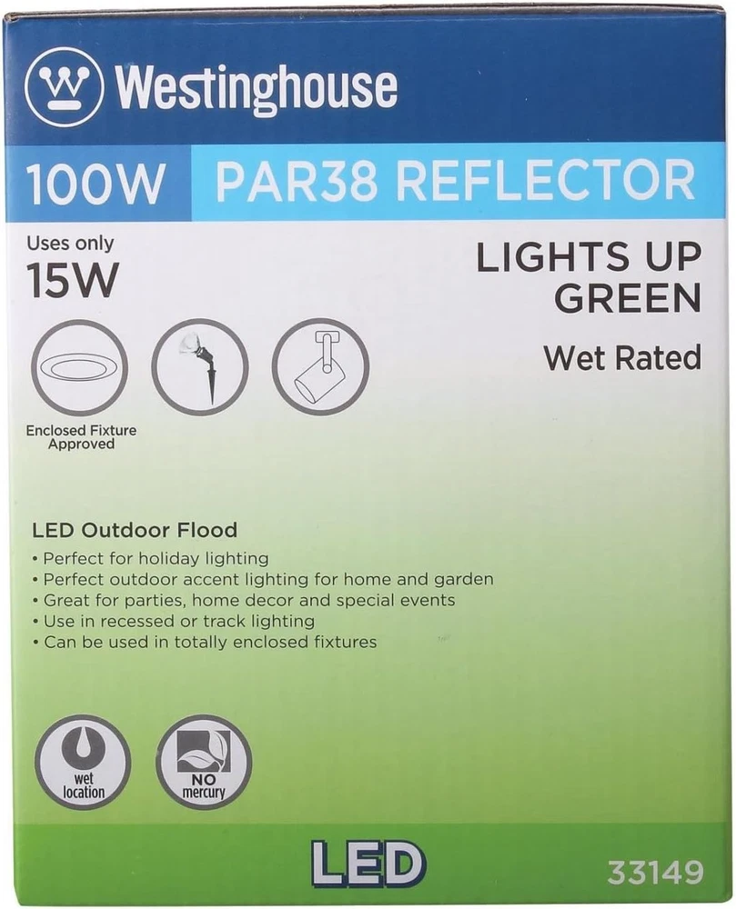 Store New Arrivals Add to Favorite View Feedback Contact Flood Outdoor Weatherproof LED Light Bulb with Medium Base Description Light Source Type LED Item model number 3314920 Style Six Pack Green 33149 Number of Items 1 Power Source Corded Electric Control Method App Warranty Description 5 year. Is Electric Yes Batteries Included? No Controller Type Push Button Unit Count 6.0 Count Batteries Required? No Finish Green Light Type Halogen, LED Bulb Shape Size PAR38 Product Dimensions 5.32 x 4.8 x 5.7 inches Material copper Model Name 3314920 Is Discontinued By Manufacturer No Specific Uses For Product holiday lighting, parties, home decor, special events Included Components led-household-light-bulbs Item Package Quantity 1 Indoor/Outdoor Usage Outdoor Light Source Wattage 15 Watts Country of Origin China Light Color Green Item Weight 3.5 pounds Connectivity Technology Normal bulb Special Features Non Dimmable Special Feature Non Dimmable Color Rendering Index 80 Part Number 3314920 Color Green Wattage 15 watts Incandescent Equivalent Wattage 100 Watts Global Trade Identification Number 30030721331498, 00030721134197 Shape par38 Voltage 120 Volts Size 6 Count (Pack of 1) Weatherproof LED PAR38 design provides the look of halogen light bulbs with energy-savings up to 85% Energy-efficient 15 watt LED replaces a 100 watt incandescent and lasts longer than conventional Lighting Green Color, flood, medium base, wet rated, non-dimmable PAR38 Green LED flood is perfect for outdoor holiday Lighting, parties, home decor, special events and totally enclosed Fixtures Use this LED light bulb for energy and cost saving benefits The Westinghouse 15 watt Par38 LED outdoor wet location light bulb (6 pack) is an energy-saving alternative to halogen Par38 light bulbs. This bulb produces a vibrant, Green light and is perfect for holiday lighting, parties, home decor, and special events. Suitable for enclosed fixtures and for use in wet locations such as outdoor-rated light fixtures. This weatherproof LED reduces energy costs up to 85 percent. Save $233.75 over the of the bulb when compared to a standard 100-watt halogen bulb. Leds are free of harmful mercury making them a great choice for your needs. Making the switch to Westinghouse LED light bulbs provides significant energy-saving benefits. Westinghouse is a trusted, global brand. Westinghouse knows lighting and offers products with exceptional quality, reliability and functionality. Product reference number 33149. ABOUT US We offer the best prices around on high quality products. Our E-store includes media such as books, movies, music and games while offering electronics, toys, sporting apparel, clothing, tools, general home, garden items and more. SHIPPING We are always working hard to ensure your package arrives as soon as possible. Please understand that some factors like weather, high postal traffic, and the performance of shipping companies are outside of our control. We offer free shipping to the lower 48 states and ship within 2 business days of payment, usually sooner. We do not accept P.O. Boxes. Please provide a physical address. For shipping outside of the continental USA, we only use eBay's Global Shipping Program.The item is shipped to KY and then sent to the rest of the world. International customers are responsible for all duties and taxes. Continue to check out in order to calculate costs for shipping the item to your country. Messages regarding eBay's Global Shipping Program MUST be directed at eBay EXCLUSIVELY. RETURNS We offer a 30-Day Return Policy on items which you are not completely satisfied with. You have the option for a full-refund or an exchange of the item. No returns are available on items shipped outside of the USA. PAYMENT We accept PayPal. CONTACT US This page content is yet to come Please ad us to your favorite seller and visit again later Thank You CUSTOMER SATISFACTION We try our very best to make sure every customer is completely satisfied. If there's a problem, message us! We're happy to help. WE ACCEPT Copyright © 2021 AutoDS. | All Rights Reserved
