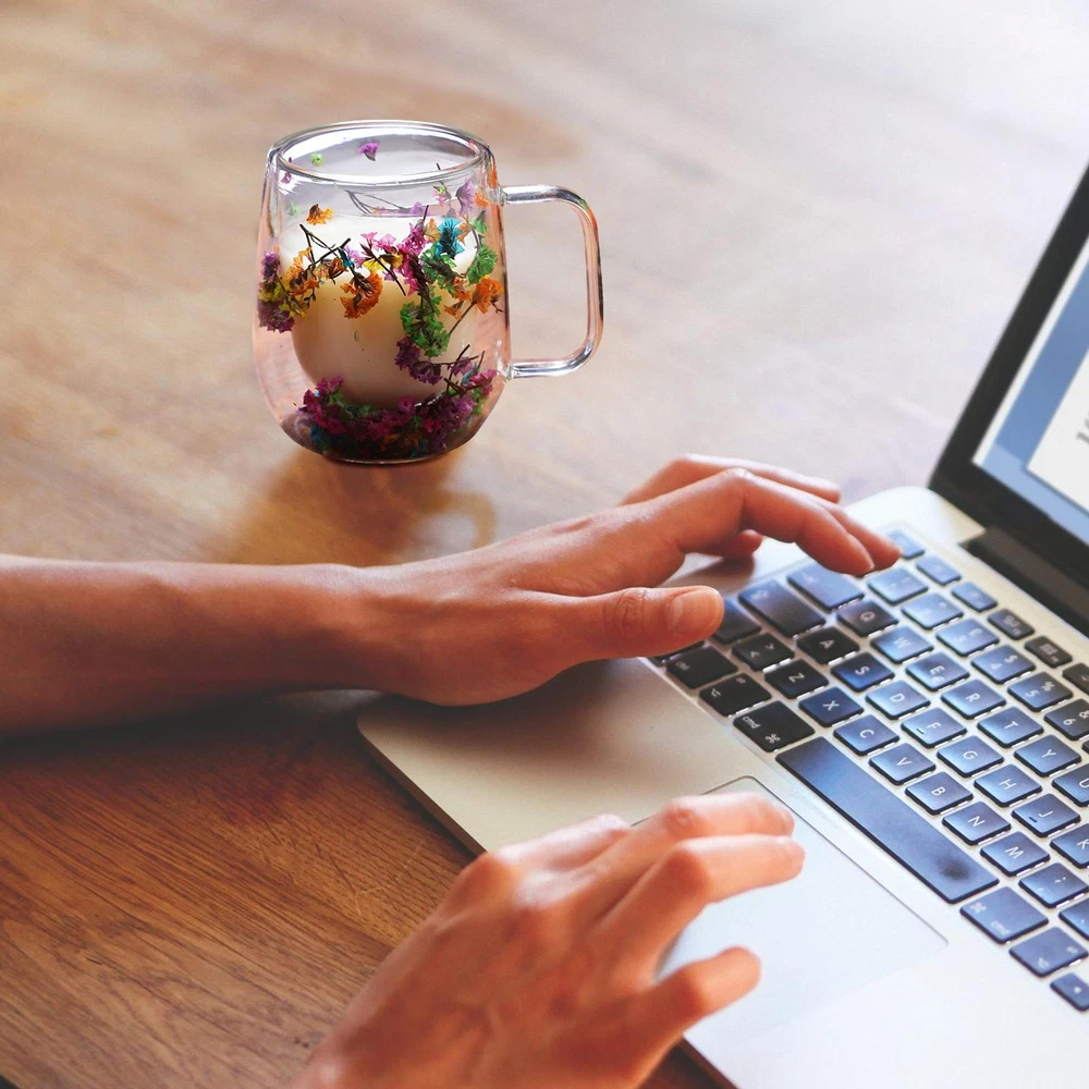 I absolutely love this floral double-wall glass cup! It keeps my tea hot without burning my hands, and the beautiful dried flowers inside make every sip feel special. Perfect for gifting or treating yourself—sturdy, stylish, and so cozy to hold. Great for coffee or tea lovers!