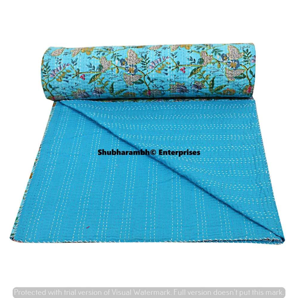 Product Details: Item - 1 PC Indian Cotton Kantha Quilt. Fabric - 100% Cotton Fabric. Dimension - 90" X 108" Inches ( 224 X 274 CM) Colour - As Show in image Wash Care - Machine Wash In Cold Water. Product Description: Indian Cotton fabric Hand Quilted Kantha Quilt,Twin Blanket / Bedspread These Single Kantha quilt is made by two layer cotton fabric. These Kantha quilt is made by most of valuable hand art to give a unique Kantha pattern. Payment policy: We accept the payment by pay pal. International buyers are responsible for their countries duties and taxes.