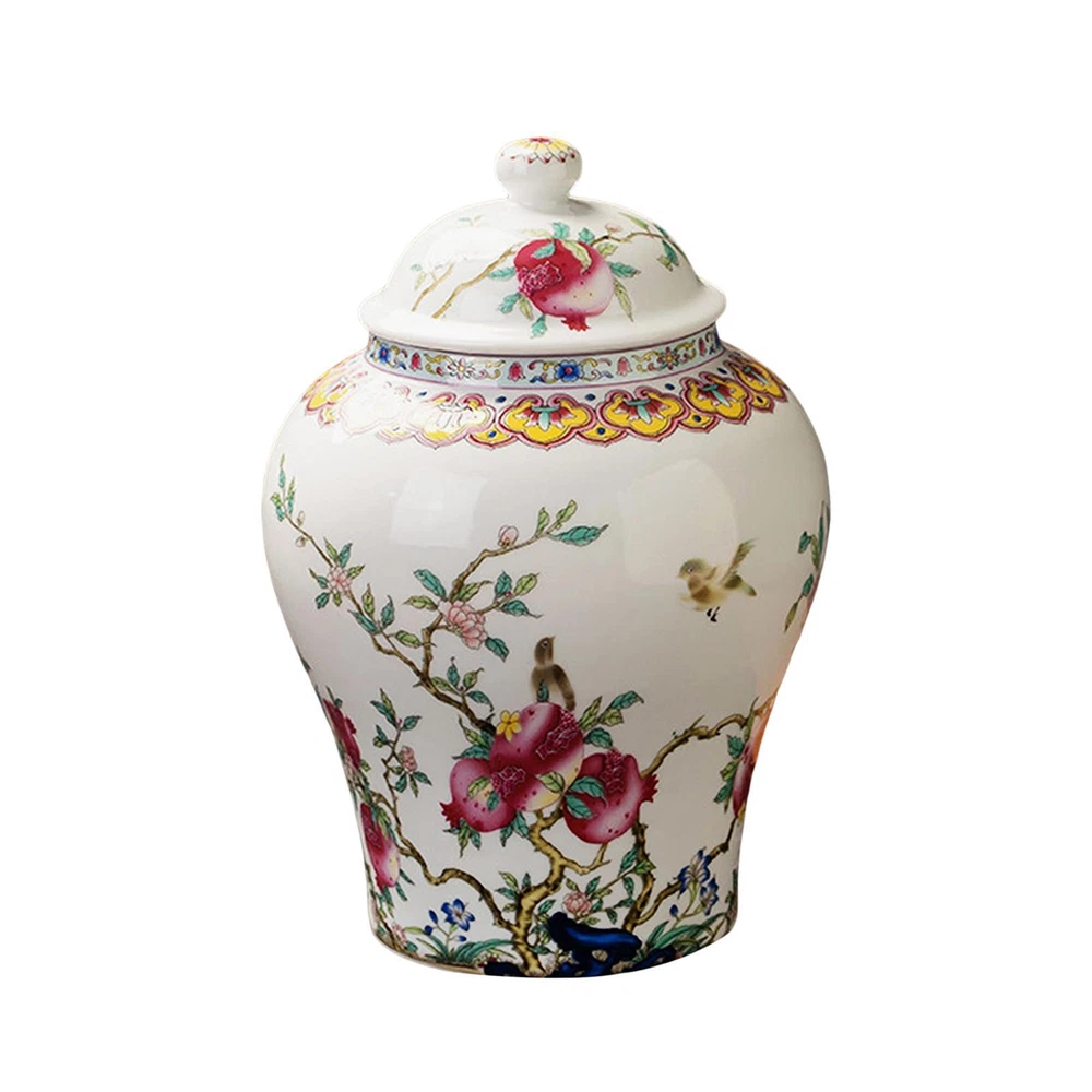 Description: 【Chinese Style】Ceramic ginger jar with chinese traditional pattern, delicate glaze, it makes your room decoration look more elegant. 【Ceramic Material】Tea Storage Jar comes , painted exquisite. Smooth surface and elegant color. 5.31'' in diameter,7.87'' in height. 【With Airtight Lid】Porcelain Tea Canister with lid, used as a tea canister or jars for nuts, coffee beans, snacks, tea jars or decorative vases. 【Applications】Loose Tea Container is suitable for all various occasions like office, meeting room, bedroom, parties, nice gift for warm house, farmhouse, wedding, birthday etc 【Centerpiece Table Decoration】The ceramic food storage container is suitable for decorating of shelf, entrance,coffee table, centerpiece, farmhouse. Specification: Material: Ceramic Capacity: 1300ml Size Chart: Width: 13.5cm/5.31inch height: 20cm/7.87inch mouth:7.5cm/2.95inch Package Includes: 1 Porcelain Tea Canister Note: Please allow slightly errors due to manual measurement and different monitors.