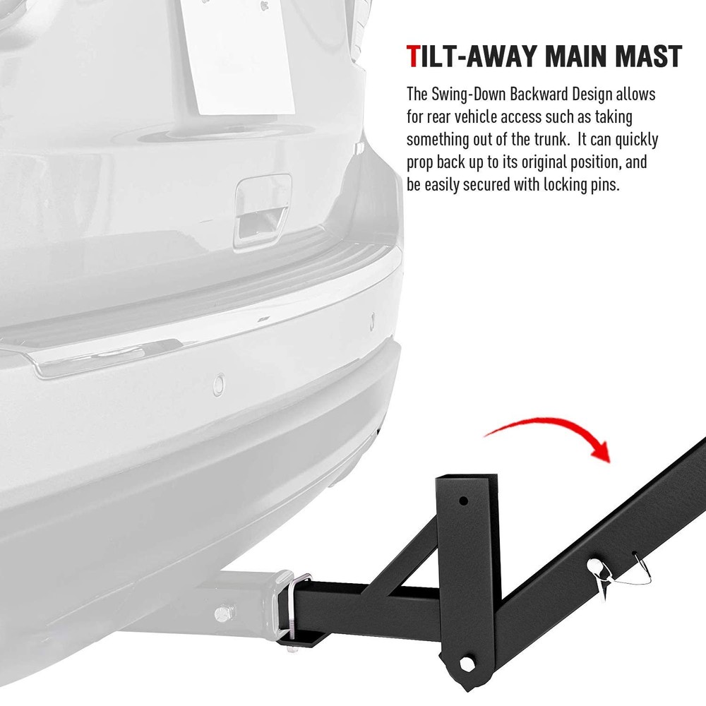 AA Products high quality trailer hitch bike rack designed for SUVs, RVs and Pickups. The truck bike rack will fits 2-inch receiver. Carry up to three bicycles on road trips or camping excursions. We provide a stabilizer makes the rack never rattle wherever you drive. The tightener and straps keeping your bikes sturdy and safe.Our innovative design allows an easy adjustment to your bikes. This rack can also be quickly tilted up when not in use, and away from the vehicle for easy rear cargo access.Pick up your bikes, enjoy road ride with your family and friends, AA Products Bike Rack has got your back. CAPACITY: Heavy duty bike rack made of powder-coated steel tubing that will hold bikes up to 120 lbs ADAPTATION: This car bike rack truck mount designed to transport 3 Bikes, Fits 2 inch hitch receivers FOLDABLE: Swing down feature allows easy access to rear of vehicles. Carry arms FOLDS QUICKLY when bike racks not in use SAFE AND RELIABLE: This Bike trunk mount rack comes with 2 set Elastic rubber straps and tightener features to safely and securely get you and your bikes out for adventures EASY INSTALLATION: Can be set up in seconds. If you have any questions about this car bike rack, Please don't hesitate to contact us via Amazon