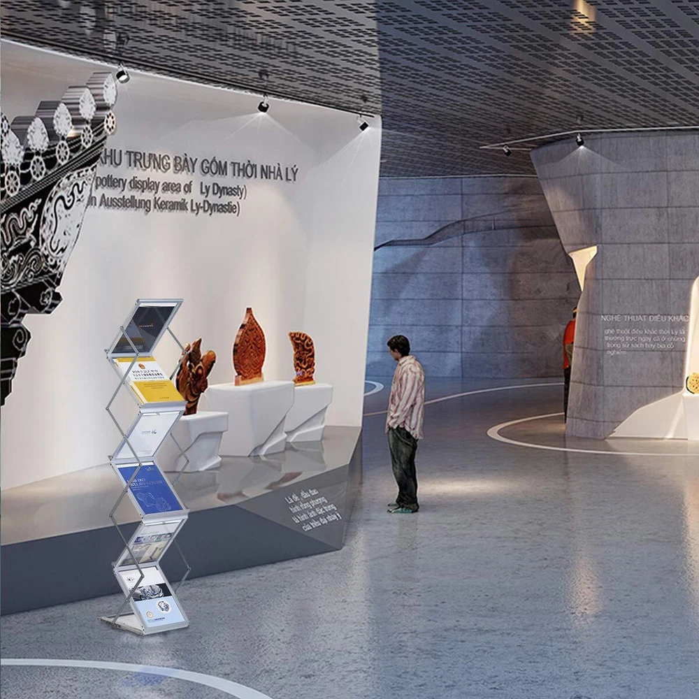 Stylish and ultra-modern, foldable and portable, this Literature Stand is the perfect way to display all A4 size information, brochures, leaflets, magazines and literature pieces . Key Features: ✔Strong frame and shelving for extended durability and long-term use ✔6 display pockets for various brochures, leaflets ✔Fully assembled and easily unfold in seconds ✔Pop-up design for easy folding design for easy storage and carrying ✔Oxford fabric carry bag for easy transportation ✔Displays from both sides in 3 tiers for maximum exposure ✔Hold the printed materials of 8.5x11 inch size or less. Specification ✔ Pocket Dimension : 13” height, 11” width & 1” deep ✔ Overall Height: 59 inches ✔ Overall dimension: approx . 13.8 x 9.8 x 59 inches (LxWxH) This Brochure holder is perfect for use in reception areas, waiting rooms, retail stores, schools, libraries, tourist information centers, trade shows, exhibitions, showrooms and health centers to display brochures, magazines, leaflets, fliers, catalogs and all sorts of information of 8.5x11 inch size or less. What is included: ✔1x 6-pocket Aluminum Brochure Holder ✔1x Carry Bag ✔1x Instruction Why Wait? Click Add to Cart Now!! Display Your A4 sized Printed Information In Style!! STURDY and STABLE: This magazine stand is constructed of solid, brushed Aluminum frame, with Locking tab over the horizontal bar to lock the base into place for stable display performance. POP-UP DESIGN, PRE-ASSEMBLED: The Pop-up Design allows you to Set Up and Collapse the literature holder for easy storage or convenient transportation within Seconds. MAXIMUM EXPOSURE, 6 POCKETS: This magazine rack boasts 13.8” height, 9.84” width & 1” display pocket. Perfectly holds magazines, brochures, flyers, catalog, and other marketing materials & printed literature with A4 paper size 8.46 x 12.2 inches. MULTI-APPLICATION: Cool and modern Brochure Display Stand is the perfect way to keep your display information, brochures, magazines and other printed documents organized and easy to view in exhibitions, trade shows, reception areas, libraries, tourist information centers and much more. CARRYING BAG INCLUDED: The brochure holder folds into a compact size that fits perfectly in the included handy carrying bag for convenient storage and travel. Take it with you to business trips, trade shows, exhibitions or anywhere you want to showcase your promotional information and literature.