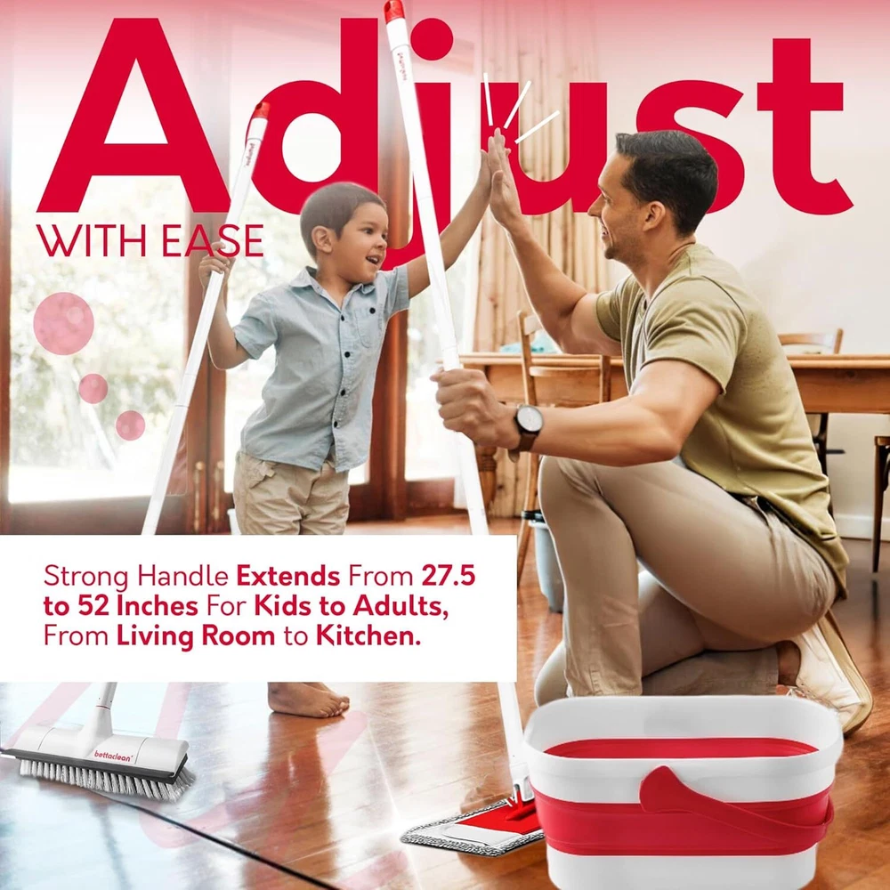 ๐จ๐น๐๐ถ๐บ๐ฎ๐๐ฒ ๐๐น๐ฒ๐ฎ๐ป๐ถ๐ป๐ด ๐๐ผ๐บ๐ฏ๐ผ: The Bettaclean foldable mop and broom set offers unmatched home cleaning convenience; a heavy duty mop paired with a collapsible mop and bucket with wringer set for home use, suitable for all surfaces, including as a mop for concrete floors ๐ฆ๐ฝ๐ฎ๐ฐ๐ฒ ๐ฆ๐ฎ๐๐ถ๐ป๐ด ๐๐ฒ๐๐ถ๐ด๐ป: This collapsible mop and bucket set features a space-efficient collapsible bucket, for compact storage; perfect for those seeking a flat mop and bucket system that delivers powerful results without clutter ๐ ๐๐น๐๐ถ-๐ฆ๐๐ฟ๐ณ๐ฎ๐ฐ๐ฒ ๐๐น๐ฒ๐ฎ๐ป๐ถ๐ป๐ด: Perfect for kitchen, bathroom, patio, and more; the Bettaclean Scrub Mop sweeps, scrubs, and squeegees smoothly across all surfaces, including hardwood, laminate, concrete, marble and tile ๐ฉ๐ฒ๐ฟ๐๐ฎ๐๐ถ๐น๐ฒ ๐ฆ๐ฐ๐ฟ๐๐ฏ๐ฏ๐ถ๐ป๐ด ๐ฃ๐ผ๐๐ฒ๐ฟ: Whether it's indoor or outdoor cleaning, this broom and mop set shines as an outdoor mop for patio, an outdoor mop for balcony, or even a scrub mop for RV adventures; designed to glide as a multi-surface household mop, leaving no dirt behind ๐๐ฑ๐ท๐๐๐๐ฎ๐ฏ๐น๐ฒ & ๐๐ผ๐บ๐ณ๐ผ๐ฟ๐๐ฎ๐ฏ๐น๐ฒ: The heavy duty mop's adjustable handle ensures comfort for users of any height, while the secure microfiber mop cloth attachment makes it a reliable scrubbing mop; for all your floor mop and bucket needs. It really is a perfect mop for floor cleaning and a great mop scrub choice ๐ฃ๐ผ๐ฟ๐๐ฎ๐ฏ๐น๐ฒ & ๐๐ณ๐ณ๐ฒ๐ฐ๐๐ถ๐๐ฒ: The Bettaclean mop for RV and home is a versatile tool, functioning as a floor scrub brush and a floor mop, ensuring a spotless finish indoors and outdoors; this collapsible mop and bucket set is perfect for any cleaning task. It is a solid choice as a portable floor mop and broom set or as a brush and squeegee set On Jan 5, 2025 at 20:34:02 PST, seller added the following information: