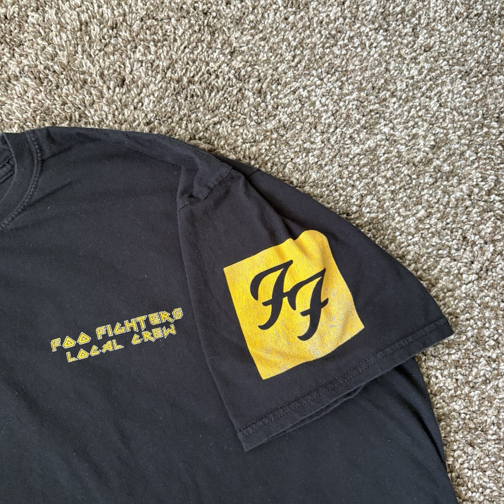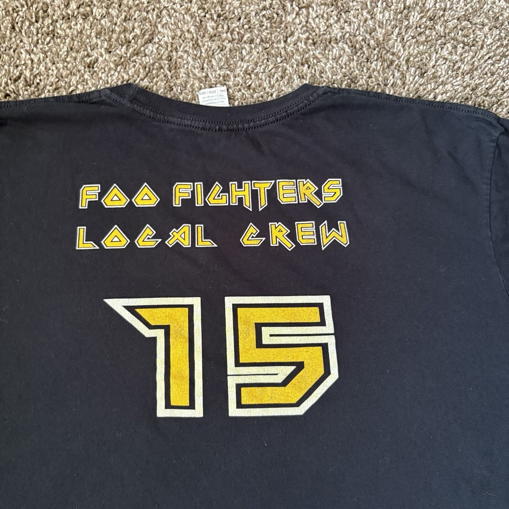 Capture the essence of classic rock nostalgia with the FOO FIGHTERS 2015 "SONIC HIGHWAYS WORLD TOUR" LOCAL CREW T-SHIRT. This rare collectible is a must-have for fans, featuring a striking graphic print that celebrates the band's iconic tour. The solid black backdrop makes the vibrant tour artwork pop, ensuring that this tee stands out in any collection. Crafted from comfortable cotton and designed with a traditional crew neck, this Gildan T-Shirt is a nod to music history. Embrace the spirit of the '60s to '90s with this regular-fit, short-sleeved piece that's perfect for fall. Whether you're headed to a concert or just expressing your rock 'n' roll vibe, this shirt is an effortless way to show off your music taste. Measurements: 24.5’x29.5’