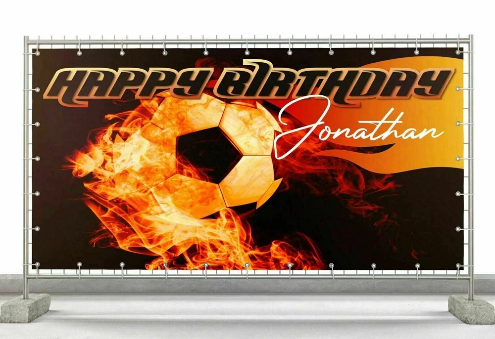Football Fire Custom Happy Birthday Banner Personalized Poster M1911