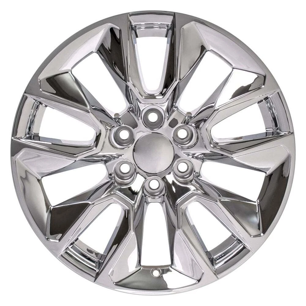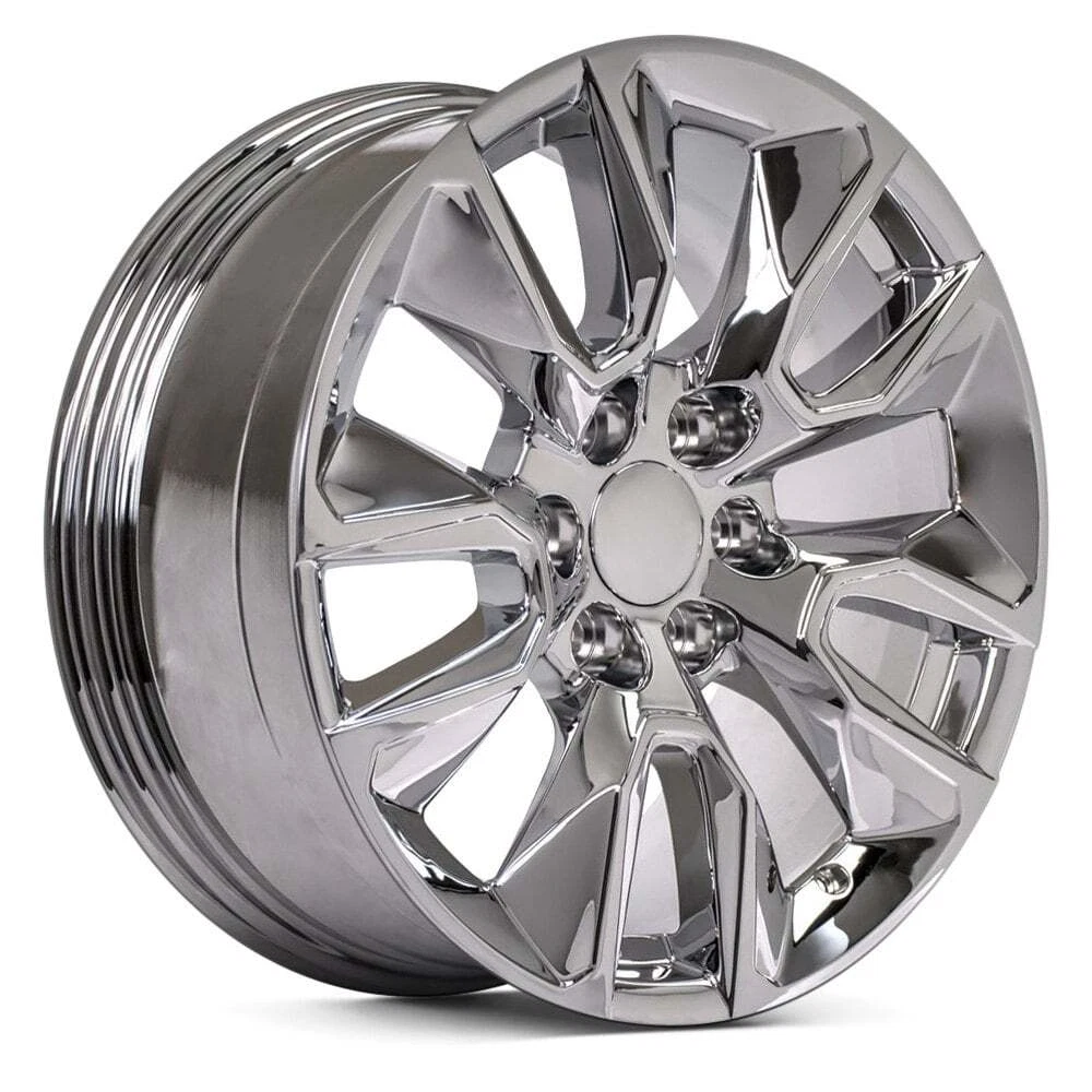 CARiD Accessories CARiD Wheels & Tires CARiD Auto Parts Semi Truck Motorcycle Powersports RV / Camper Boating Recreation Tools WHEELS & TIRES Interior Exterior Lighting Audio Wheels Tires Performance Repair Body Automotive Tools For Chevy Silverado 1500 99-22 Alloy Factory Wheel Wheels 5 V-Spoke Chrome 20x9 Part Number: 9509782 ● In Stock: Ships in 4 days Authorized Dealer: Lowest Prices. On the go Daily Deals Guaranteed Fitment. Always the correct part In-House Experts. We know our products Our Newsletter: Product Details Product Details 20" Replica 5 V-Spoke Chrome Alloy Factory Wheel by OE Wheels®. Size: 20" x 9". Hub Size: 78.1mm. Bolt Pattern: 6 x 139.7mm. Offset: 28mm. Backspacing: 6.1". Load Rating: 2450 Lbs. Designed to meet your original wheel standards, OE wheels will perfectly fit your vehicle and help restore its look to the original condition, while ensuring safe and comfortable driving. The wheels are made using state-of-the-art technologies to ensure superior reliability you are looking for. 20" Replica 5 V-Spoke Chrome Alloy Factory Wheel by OE Wheels®. Size: 20" x 9". Hub Size: 78.1mm. Bolt Pattern: 6 x 139.7mm. Offset: 28mm. Backspacing: 6.1". Load Rating: 2450 Lbs. Designed to meet your original wheel standards, OE wheels will perfectly fit your vehicle and help restore its look to the original condition, while ensuring safe and comfortable driving. The wheels are made using state-of-the-art technologies to ensure superior reliability you are looking for. Notes: Center cap included, Original center cap will interchange. Features: Designed to comply with OE wheel standards Direct replacement, will perfectly fit your vehicle Built from high-quality materials to last Crafted utilizing innovative manufacturing technologies Provide superior reliability for years to come A new replacement wheel from the dealer is very expensive! Still, it doesn't mean you can drive around with a damaged rim since a bent or dented wheel may not enable the tire to track properly, upsetting vehicle handling and compromising your safety. Made to conform to the manufacturer's wheel standards, OE Wheels won't cost you an arm and a leg, providing unsurpassed quality and exceptional durability. So, if you want your vehicle to look great from top to bottom and wish to stay on the safe side while driving, rely on OE Wheels. Product Video About Us About Us No matter whether you're doing basic repairs and maintenance, modifying your car's street appeal and performance, or adding high-tech lighting and electronics, our great selection of brand name products and knowledgeable associates will ensure success with all your automotive projects. Our Mission We offer the finest and widest variety of automotive parts and accessories using state-of-the-art technologies, and employ the most dedicated and creative team members. These individuals focus on exceeding expectations of customers who want the exact component at the best price in the quickest time. Our goal is to provide a WOW experience during every customer interaction. Whatever you need, whether it's a replacement part to fix a broken down vehicle, a crash part to repair a vehicle from an accident, perhaps a new set of custom wheels and tires, or something to make it flashy or faster, lifted or lowered, we will be your one-stop shop. We fulfill our mission daily with enthusiasm and optimism, learning from our ongoing opportunities and successes. We enjoy a modern yet tricked out work atmosphere while ensuring a true learning environment to develop our people. All manufacturer names, symbols, and descriptions, used in our images and text are used solely for identification purposes only. It is neither inferred nor implied that any item sold by CARiD is a product authorized by or in any way connected with any vehicle manufacturers displayed on this page. Copyright © 2003-2025 CARiD. All rights reserved.