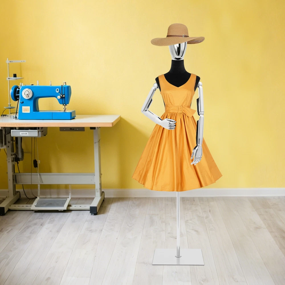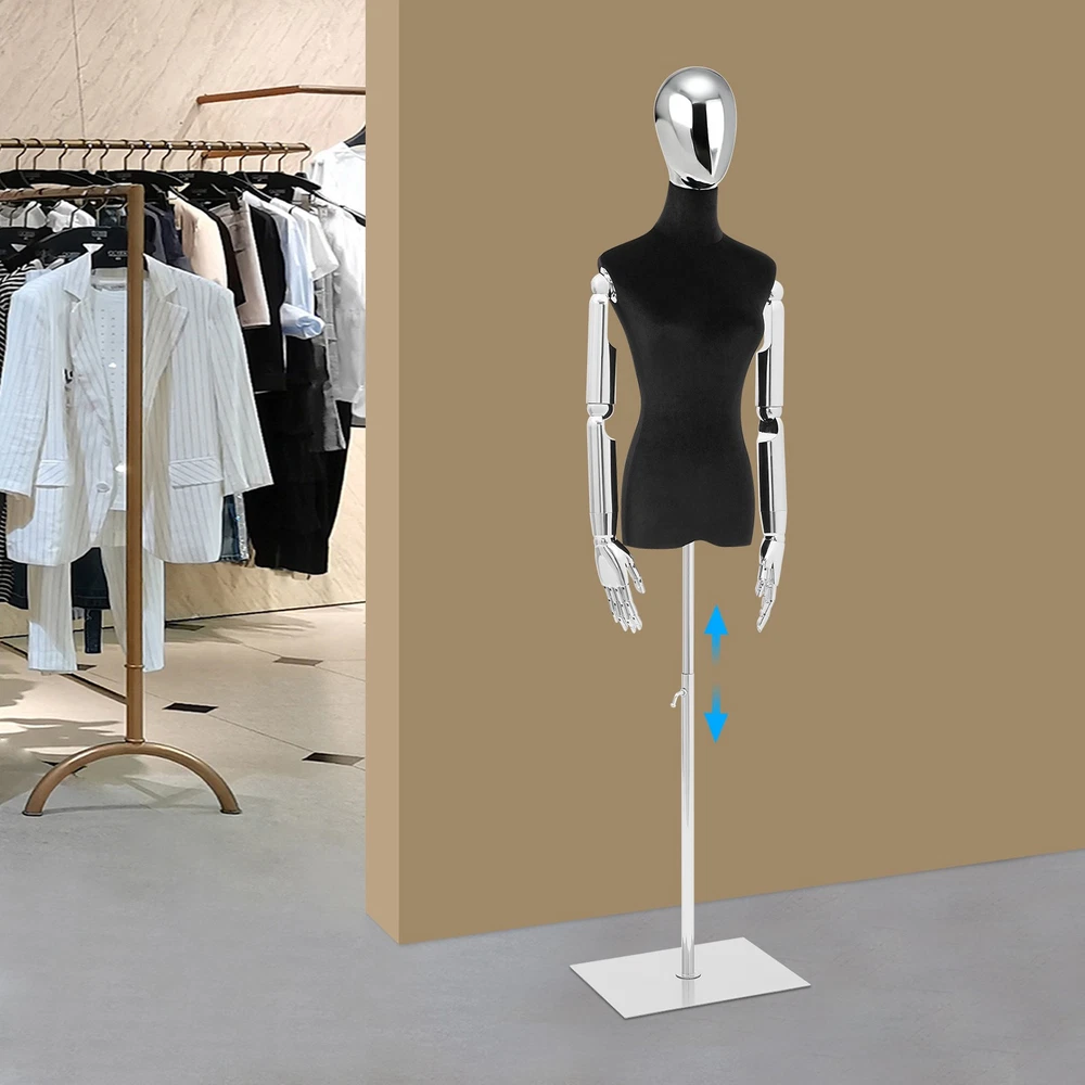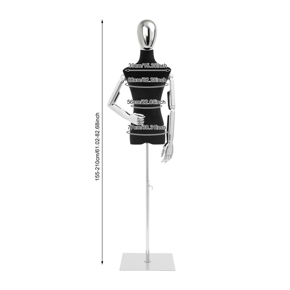 For Clothing Stores Female Dress Form Display Adjustable Female Mannequin Body Description This female dress form is meticulously crafted from premium materials, offering a sturdy and long-lasting structure. Its exceptional design presents the graceful curves and intricate craftsmanship of women's apparel. The clean yet sophisticated aesthetic not only adds a unique touch to your store but also ensures every garment shines at its ideal angle, drawing every customer to pause and admire. Key Features Stable and Durable: Crafted from premium PE, metal, and soft velvet, this product, after electroplating, boasts exceptional endurance against aging, rust, and wear, ensuring long-lasting durability without compromising garment safety. Practical Functionality: Easily customize the product height (approx. 61.02-82.68 inches) for precise, convenient adaptation to varying garment lengths and display requirements. Exceptional Appeal: Its surface is covered with soft, neat, and delicate velvet, providing garments or accessories with an exceptional fit, as if they were smoothly integrated with the torso. The meticulously selected color palette not only significantly enhances the appeal of the garments and accessories themselves, making them visual focal points, but also adds an undeniable charm to the display space. This makes the entire window display stand out among the crowd, radiating an attractive artistic aura. Standard Size: This product replicates the standard female physique, effectively showcasing the unique charm of each garment and accessory to attract more customers. User-Friendly Design: Two sockets at the torso bottom allow easy pairing with pants and skirts (not included), accommodating diverse display needs to ensure ideal presentation results. Details Unique Spring Arms: Featuring a sophisticated spring mechanism and threaded rotation mounting, these arms offer exceptional flexibility for rapid attachment to the mannequin torso. The adjustable design allows you to freely modify arm poses to suit various display scenarios. Rectangular Base: The wide, sturdy base features grippy pads on all four corners, maximizing ground contact to ensure outstanding stability and balance for the product. Application This product is suitable for clothing stores, wedding dress shops, shopping malls, tailor shops, textile factories, clothing exhibitions, graduation projects, and other places. It can be placed in windows, counters, and tiered displays to display your clothing, jewelry, and headwear. Specification Mount Type: Freestanding Assembly Required: Yes Style: Modern Color: Black, Silver Material: PE, Metal, Velvet Process: Electroplating Height Adjustment Range: Approx. 155-210cm / 61.02-82.68in Shoulder Width: 39cm / 15.35in Chest Circumference: 82cm / 32.28in Waist Circumference: 56cm / 22.05in Hip Circumference: 77cm / 30.31in Package Size: 76*37*31cm/29.92*14.57*12.2in Gross Weight: 9kg/19.84lbs Net Weight: 8.55kg/18.85lbs Package Included 1* Female Dress Form Notes Please check th e style and size before purchasing. Please note that this product does not contain any clothing items. Please hold the metal support pole part when moving the dress form. Please note that this product is primarily intended for display purpos es and is not recommended for repeated use with pins to pierce the fabric. Please allow the slight color difference caused by the shooting light and a 1-3cm error due to manual measurement, and make sure you do not mind before ordering. Payment Delivery details Terms of sales About us Contact us Payment We accept ebay payment 。 Fees such as import duties, taxes are not included in the item price or shipping costs. These charges are the buyer's responsibility. Delivery details Shipping: 2-9 working days to: USA Terms of sales We maintain high standards of excellence and strive for hundred percent customer satisfaction. Feedback is very important to us. We hope that you contact us immediately before you give neutral or negative feedback, so that we can address your concerns. It is impossible to address issues if we do not know about them! About us Your satis faction is our ultimate goal. We work hard to earn your trust and future business. Our certified technicians have tested each item before shipping. The unit comes with 1 year limited warranty on all manufacturing defects. a) If you receive a defective item, you may return it or ask for a discount. Please contact us within 14 days after you receive the package. b) What you returned must be intact and in its original packaging as re? u. Customer is responsible for shipping costs of the returned item. c) We will cover the cost of shipping back t with the shipping rate indicated in the registration page. We will send you a new unit or refund the full payment you paid. Thank you. Contact us Business Hour Business Hour: Monday To Friday: 8:30 AM to 5:00 PM (Beijing China time) Due to time zones, our reply to your questions may not be immediately. But within above working time, we will reply your email within 24 hours. If it's non-workdays, please kindly be patient and wait till Monday. Please contact us with ebay message. Please feel free to contact us if you have any questions. Monday To Friday: 8:30 AM to 5:00 PM (Beijing China time) Due to time zones, our reply to your questions may not be immediately. But within above working time, we will reply your email within 24 hours. If it's non-workdays, please kindly be patient and wait till Monday. Please contact us with ebay message. Please feel free to contact us if you have any questions. Brand Unbranded Material PE, Metal, Velvet Height Adjustment Range Approx. 155-210cm / 61.02-82.68in Gender Female Color Black, Silver On Dec 4, 2025 at 21:56:31 PST, seller added the following information: