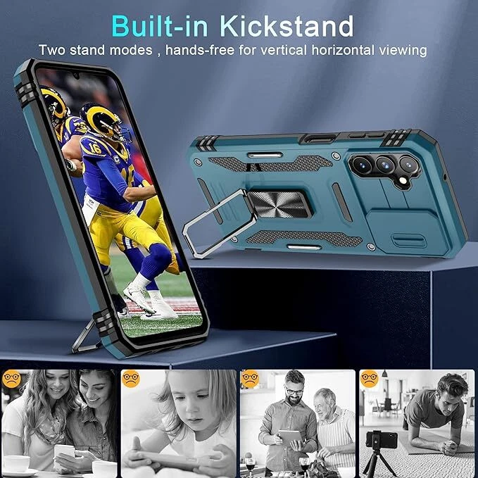 For Galaxy A14 5G Case with Military Grade Protection & Shockproof Case Cover Compatible with: Armor Case with sliding camera cover specially designed for Samsung Galaxy A14 5G 6.6 Inch. NOT fit for other device! The precise cut out fits each button,camera,speakers and ports precisely, easy to press and access Military Grade Protection: Double layer shockproof case made by TPU and PC.This multi layer cushion structure provide additional shock absorption protection.Certified by the Military Standard,survived over 8,000 drop tests!The flexible TPU interior absorbs impacts from inside.And exterior with four reinforced corners can effectively absorb the impact of falling Camera and Screen Protection: Sliding camera cover protect for samsung galaxy A14 5G case camera lens from getting scratched and scuffed.Subtly enhanced 1.8 mm screen lips and glass screen protector provide the screen extra and comprehensive protection.Ensuring every aspect of your phone is protected with uniquely Magnetic Ring Kickstand: Newly upgraded multi function case built in ring kickstand and metal patch.Rotating ring provide two stand modes for vertical horizontal viewing,so it can be used as ring holder and release your hand when watching video.The Metal Patch back easily attach to magnetic car mount,very convenient during driving time for navigation.You will love how convenient it is with such powerful functions. What's in the box 1 x Galaxy A14 5G Case Cover Top-Notch USA Seller | S wift USPS/UPS delivery | Shipped within 1 Business Day | Quick Replies | Free Shipping | Prompt Communication Contact us We value open communication with our customers. Our team is committed to providing quick responses to any queries or concerns you may have regarding our products or your order. Please feel free to contact us on eBay's Internal Message System for any questions or concerns you may have. Our dedicated customer service team is committed to providing exceptional support and ensuring your shopping experience with us is nothing short of excellent. Customer Service We strive to offer the best quality products to our customers. Each item listed in our store undergoes rigorous quality checks to ensure customer satisfaction. If you have any problems, we are very glad to help you. Please message us directly through eBay for faster response. Your inquiry is important to us and we'll respond within 24 Hr. Your order will be shipped within 1 business days upon full payment received. [ Due to the different monitor and light effect, the actual color of the item might be slightly different from the color showed on the pictures. Thank you! ]