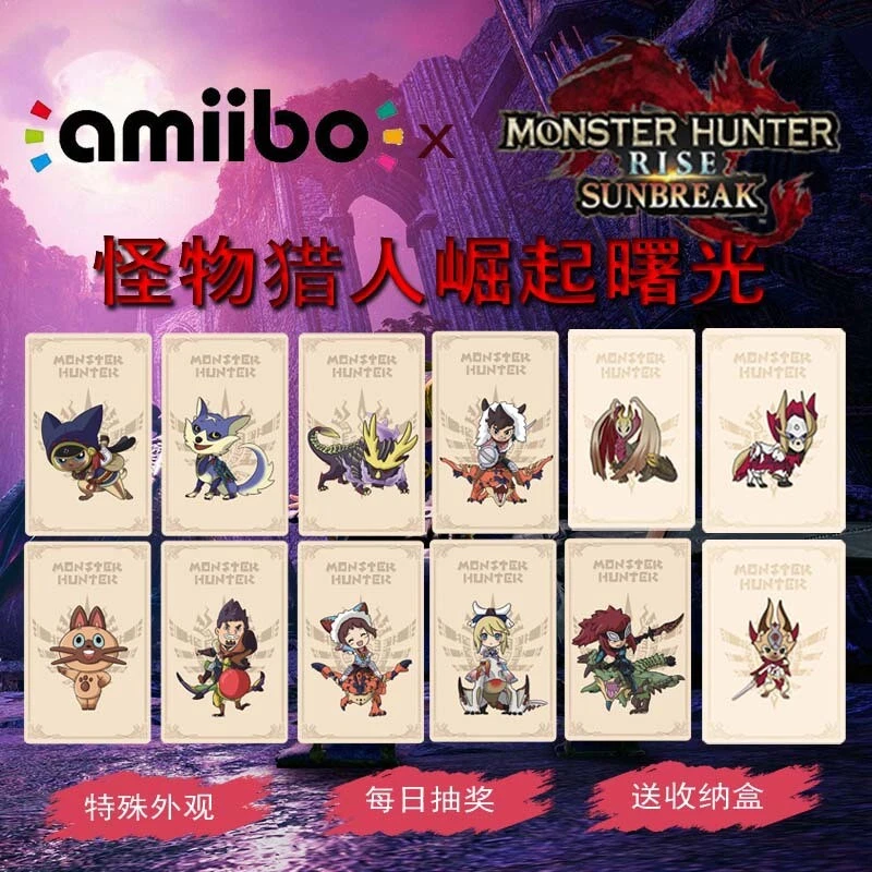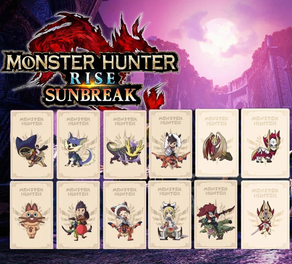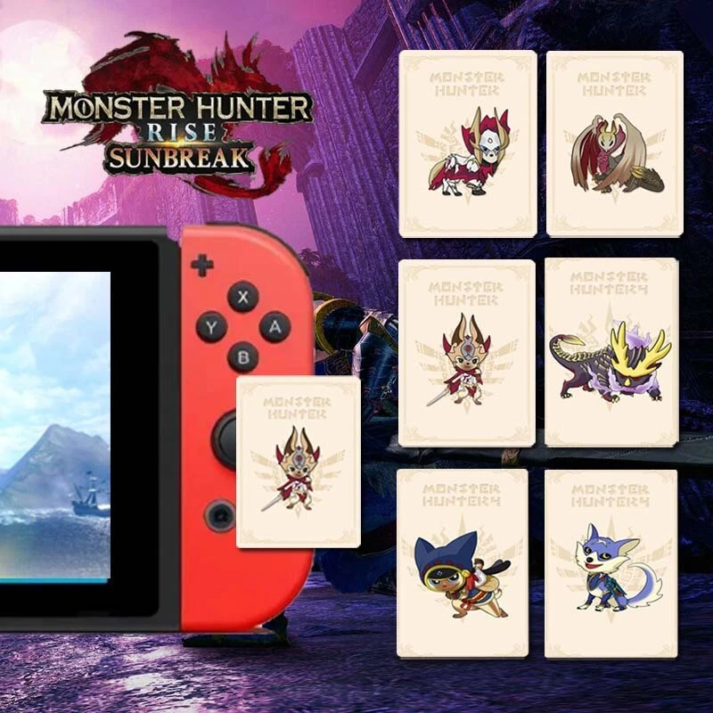 Used in (Monster Hunter Rise Sunbreak), you can get special appearance equipment corresponding to the linkage card, and you can participate in the lottery every day and get a variety of props. Put the card on the Right Stick of your Joy-Con or Pro Controller which can support NFC function. This is our NFC printing cards work for Monster Hunter Rise SunBreak PVC Material, 3PCS Standard card Size (85*54mm) 3PCS Mini card Size (30*20mm) 6PCS Standard card Size (30*20mm) 6PCS Mini card Size (30*20mm) 12PCS Standard card Size (30*20mm) 12PCS Mini card Size (30*20mm) Package content: 6/12PCS cards (free box) or 3pcs cards