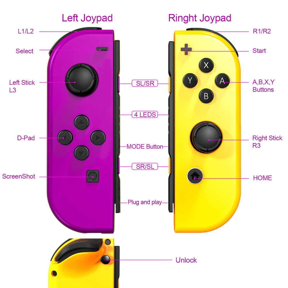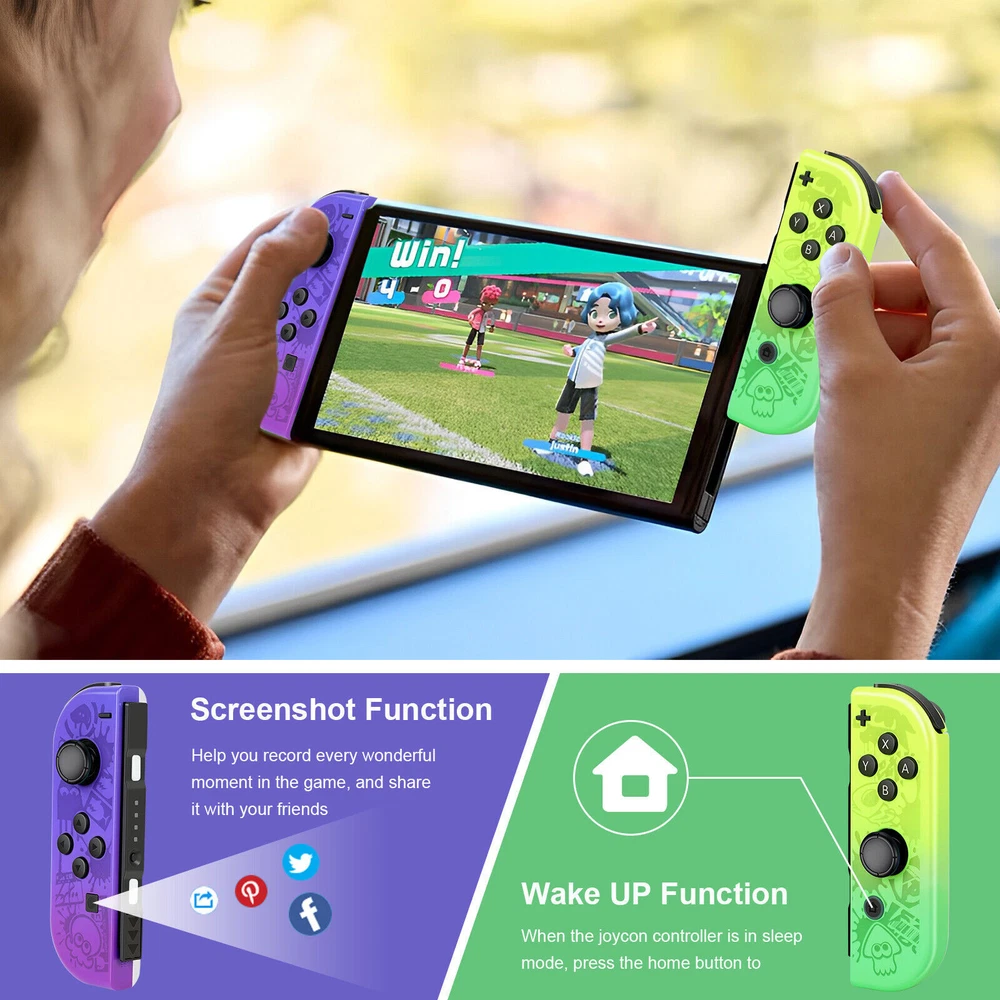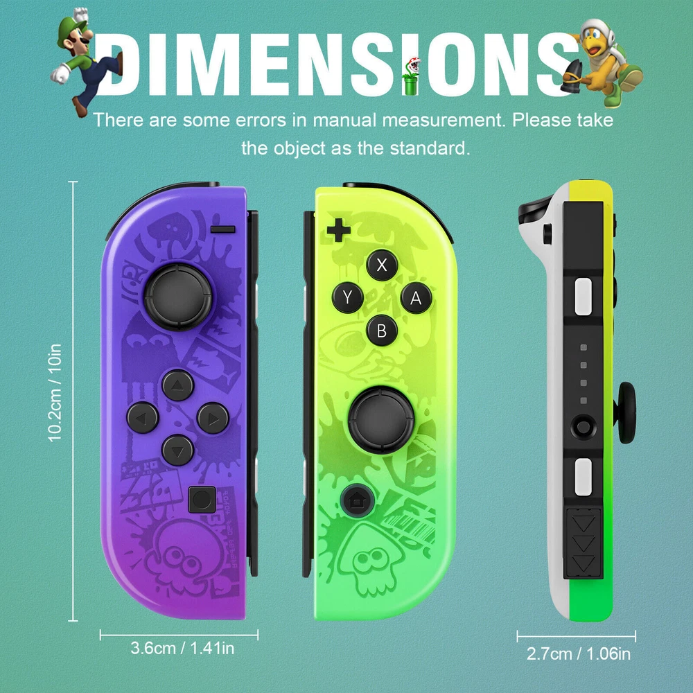 For Nintendo Switch Joy-Con Controller Gamepad Left + Right Wireless Joystick US Notes: We sell the controller and straps seperatelly, if you need both, please buy both Set. Features: 【Design for Nintendo Switch】 Switch controller is an ideal alternative to original controller, which is perfectly compatible with Switch. The left and right controller can be used alone, which is suitable for multi players combat or cooperative playing. It can also be installed on the switch to become a handheld mode, suitable for playing games alone. 【Support Wireless & Wired Function】 Switch controller the simple slot design ensures your switch is safe. Support the cable connection by sliding the switch controller onto the console and the switch controller automatically connects to the console. If the controller is not powered on, after connecting the console through the cable, the console will charge the controller. 【Ergonomic Design & Long Playtime】 Switch joycon the switch controllers offer multiple surprising new ways for players to have fun; With the unique grip and ergonomic design to rest your palms and index fingers. Comfortable to Hold If you use your switch as a handheld. You can now play for hours without your hands hurting. Especially fits for large hands. built-in battery in each joy con controller provides 15-20 hours gaming session. 【High Performance and Include Grip】 Switch joycon controller joy con controller left and Right Controllers controllers can be used as an entire controller or can be used as two independent controllers for Switch.Neoteric 3D stick can be operated precisely on 360°all-round. Offering you a pleasant gaming experience. NO NFC to support function and IR motion camera function. 【Double Shock & Motion Control Function】 Switch Joypad controller supports the Gyro axis and dual motors vibration functions. With 6-Axis gyro somatosensory and motion controls functions to provide real and stimulated gaming experience; Feel every hit and crash with hand-vibrating double shock response. Highly sensitive motion control system senses your every move and characters as well as objects in the game will move and react as you tilt,push and shake the controller. Compatible with Nintendo Switch/Lite/OLED console, NEW Replacement Not Original. Package: 1 pair controller( Left + Right ) Payment Delivery details Terms of sales About us Contact us Payment We accept payment via PayPal, Visa, Mastercard, Apple Pay, Google Pay etc. Delivery details 1. Items are generally shipped out within 24-48 hours after your payment has been cleared (Sat. & Sun. excluded.) 2. Orders from the United States will all be shipped out via USPS/Fedex. The shipment usually takes 1-5 business days( Exclude public holiday), if you need the item urgently, please contact us for detail before purchase. 3. We ship to US ONLY and do not support Collection. 4. All items will be shipped to buyer's paypal address. Please check your paypal address before place the order. 5. We are not responsible for wrong or undeliverable address. We reserve the right to charge the shipping fee again for returned items due to wrong address. Terms of sales 1. We provide 30 days free replacement ,30 days money back on non-defective, undamaged, unused and resalable products. Product is not eligible for refund after the 30-day refund period has expired. 2. Our warranty does not extended to any products that are physically damaged or that are not under normal operating conditions as a result of misuse or improper installation on the buyer/user's part. 3. For all returned products, Please contact us for the returning address. 4. In all cases, buyers pay shipping fees at their own cost to return products for exchange or refund. We will be responsible for the postage of replacements. Refund will be made upon receipt of the returned item. About us (1) We are a store, mainly run laptop accessory. Such as laptop battery , tool battery, ac adapter etc. (2) All item passed FCC / CE / ROHS certificates. Help buyer reduce the risk of damage, fire, dangerours mostly. (3) We work with a good quality OEM supplier and factory. Help you and us save money greatly. Contact us - You don't need to pay for eBay Square Trade for getting covered by our warranty policy. - There is a warranty label on our products like batteries and adapter chargers, please keep it safe and sealed. - We don't cover the failure or damage caused by misuse, accident, modification, inappropriate physical or operating environment, natural disaster, power surge, and improper maintenance or storage. - If you misuse the eBay Return Policy, our warranty to your purchase will be revoked. - Please contact us via eBay message if you have any problem and please allow us 24 hours to reply, we will do our best to help you solve it.