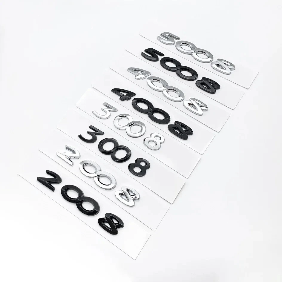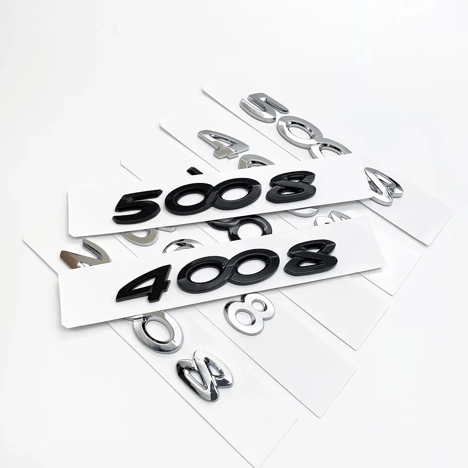 Product material: ABS plastic Product details: Car Trunk Letters Emblem Applicable models: For 2008 3008 4008 5008 Hello, dear friend 1. All photos are real photos. 2. Color: glossy black, Chrome silver 3. If you need more photos about the product, please contact us. 4. If you need other types of products, please contact us. 5.If you need the corresponding car logo and hubcap, you can send photos to contact us.