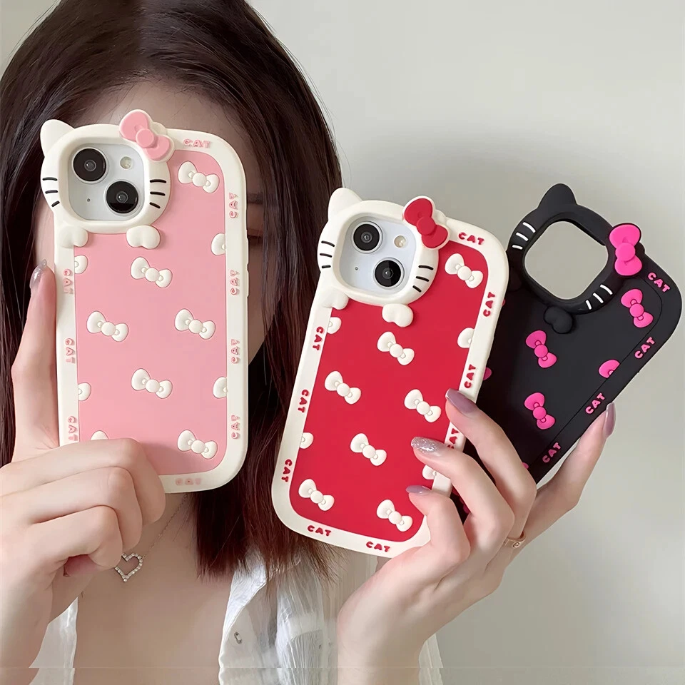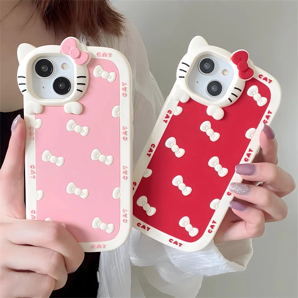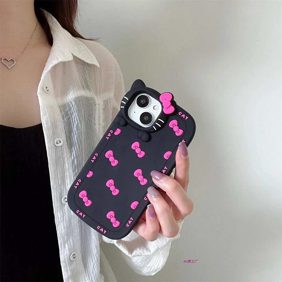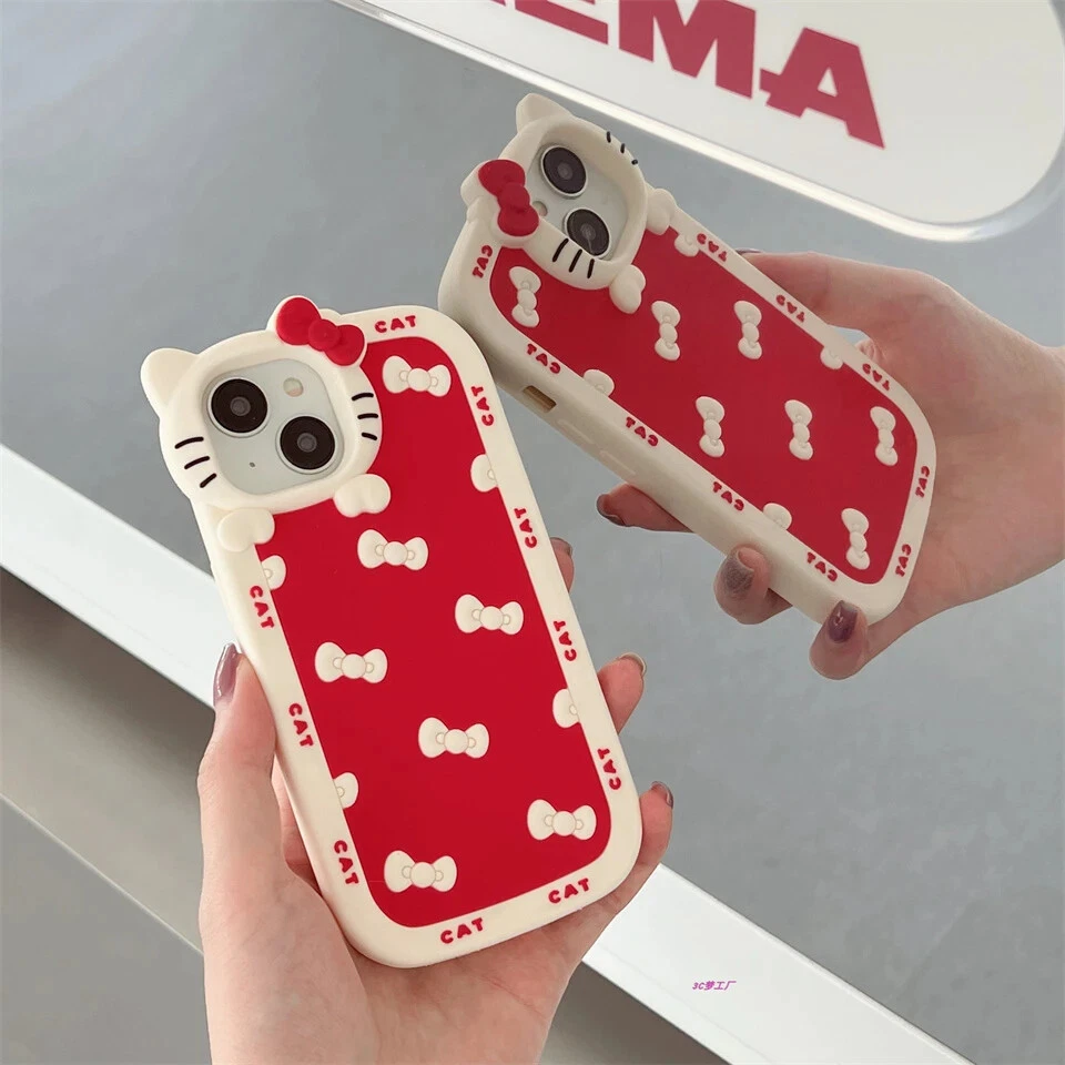 For iPhone 15 14 13 11 12 Pro Max Hello Kitty Cat face Clear Silicone Phone Case