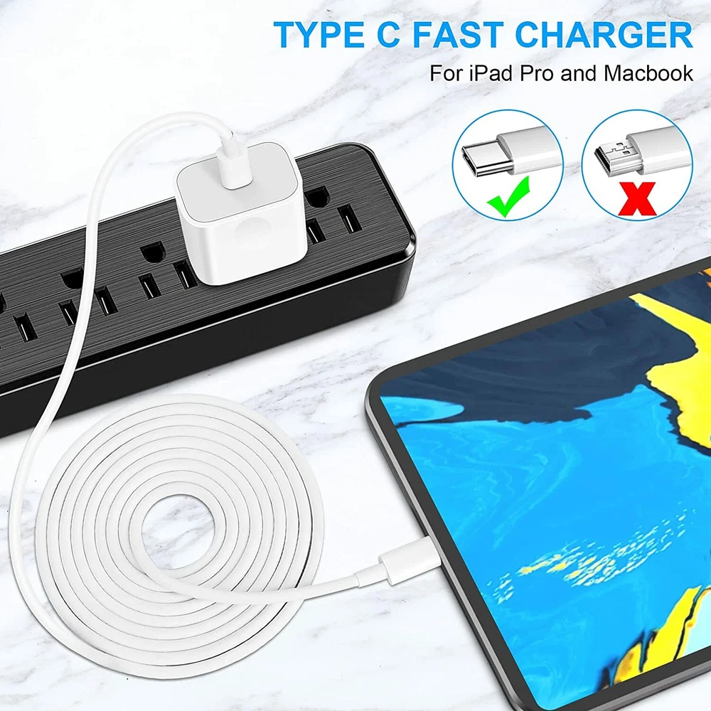 eBay Set: Input: AC 100~240, 50/60Hz Output: 5V/3A, 9V/2A-2.22A, 12V/1.5A-1.67A, 3.3-5.9V/3A, 3.3-11V/1.63A-1.8A Maximum Power: 20 watt Product color: white 20W USB C Power Adapter: Specification: Type: 20W PD Fast Charger, Wall Charger ,USB C Power Adapter,C ar Charger,Charger Adapter,Wall Charger Features: Fast Charge, Lightweight, / Color: White USB C TO USB C CABLE: Type: USB-C Cable /Charging & Data Sync Cable / Type-C/USB Cable/USB-C to USB Cable/Type c to Type c Cable/60w fast charger/PD Cable Cable Length:1m/3ft 2m/6ft Features:Fast Charge/Heavy Duty/Light weight/Portable/Travel/60w fast charger Color:White Reversible Connectors Special reversible USB C to USB C design, no need to distinguish reverse, simple and comfortable. Note: USB-A charger is not supported Only applicable to PD fast charge Fast Charge & Sync:USB C to USB C Fast Charging cable offers charging speed up to 60W NOTE: The actual charging speed depends on your device and wall charger. Simple & durable 13,000 swing life, the upgraded thick line can perfectly beat other products Thicker copper wire can increase the service life by 40% Comp atibility: For Apple iPad Pro 2021/ For Apple iPad Pro 2020/ For Apple iPad Pro 2018 For Apple iPad Pro 12.9 in 5 Generation/ For Apple iPad Pro 12.9 in 4 Generation / For Apple iPad Pro 12.9 in 3 Generation For Apple iPad Pro 11 in 3 Generation/ For Apple iPad Pro 11 in 2 Generation / For Apple iPad Pro 11 in 1 Generation For Apple 2020 New iPad Air 4th For Apple 2021 iPad Mini 6 For Apple iPhone 15 For Apple iPhone 15 Plus For Apple iPhone 15 Pro For Apple iPhone 15 Pro Max Wide Compatibility: For Samsung Galaxy S23/S22/S20/S21/S21+/S21 Ultra/Z Fold 3/Z Flip 3 For Google Pixel 4/ 4XL/ 3/ 3XL/ 2/ 2XL For LG, Motorola and any USB C & type C port phone