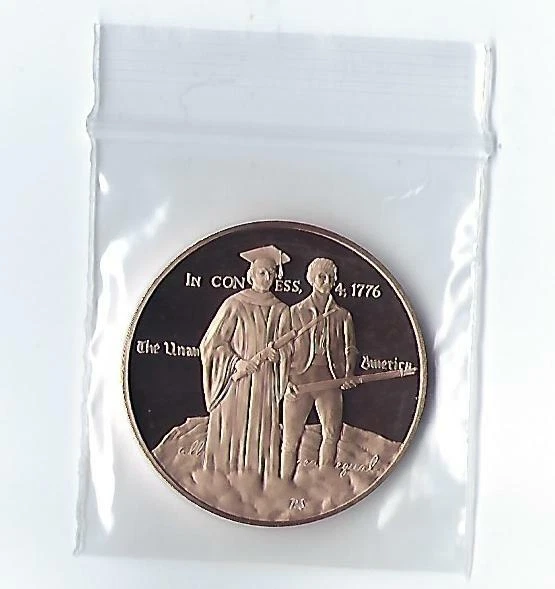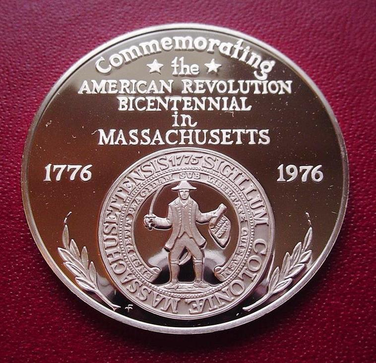 ACRYLIC ENCAPSULATED SOLID BRONZE COMMEMORATIVE COIN-MEDAL 1976 Franklin Mint - "Official Bicentennial Medals of the Thirteen Original States" Massachusetts BEAUTIFUL ENCAPSULATED (removable) BRONZE COMMEMORATIVE COIN 38 mm DIAMETER - 1.5 inch diameter