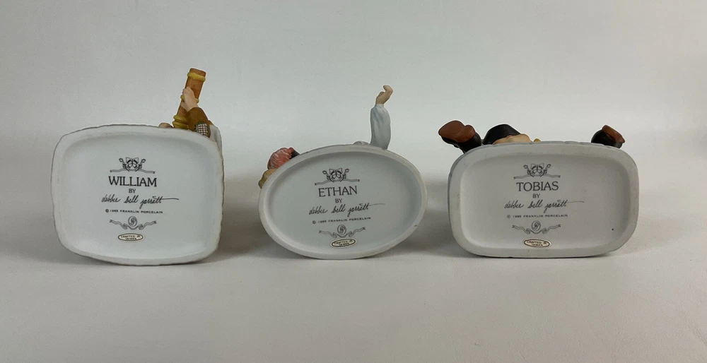 This set of 6 Franklin porcelain figurines features Debbie Bell Jarrett, a beloved character from the 1980s. Each figurine is crafted with intricate details and painted with vibrant colors, making them a perfect addition to any collection. The set includes male figurines and is suitable for boys of all ages. The figurines were manufactured in Taiwan in 1985 and are an excellent representation of the time period. These collectible sculptures are perfect for display in any room of your home and are sure to add a touch of nostalgia to your decor.