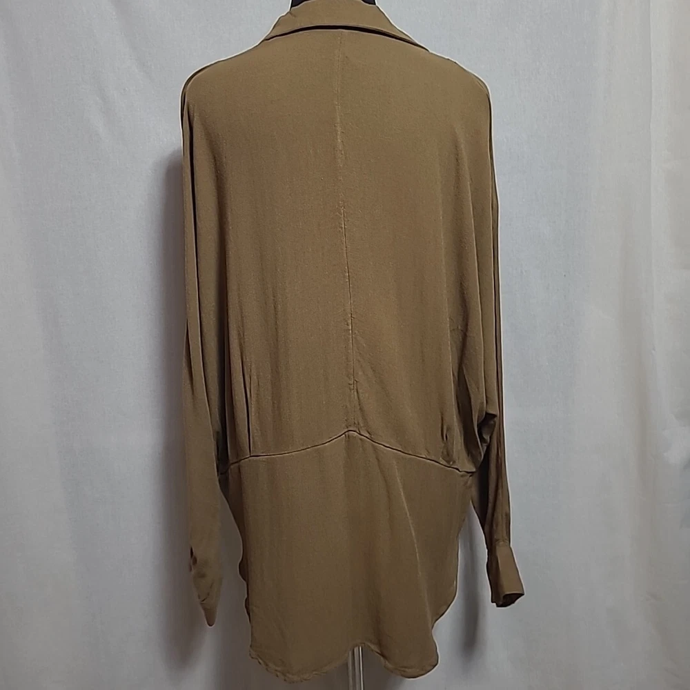 Free People Long Sleeve Drop Shoulder Top Size Medium Button Front Green Excellent Pre-Owned Condition. No rips, stains, or holes. See pictures for complete condition details and measurements. 100% Rayon Chest: 58 Inches Waist: 46 Inches Length: 30 Inches All items are sanitized according to platform policy.