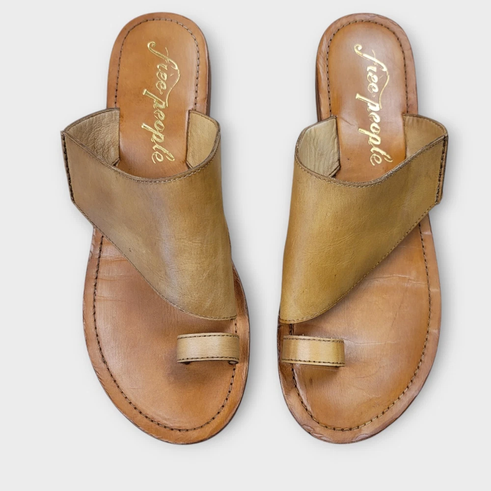 Free People Sant Antoni Slide Leather Sandal Saffron Womens EU 40 US 10 Toe Loop Note - these shoes are meant to have an aged, worn in look. Condition: Overall good condition - wear and tear as shown in photos.