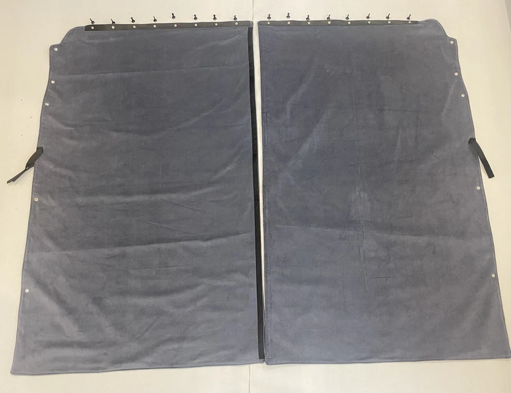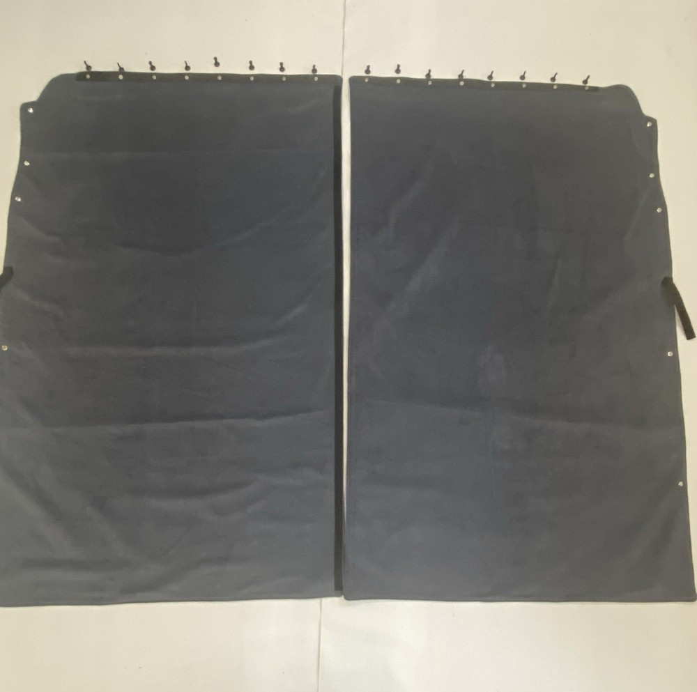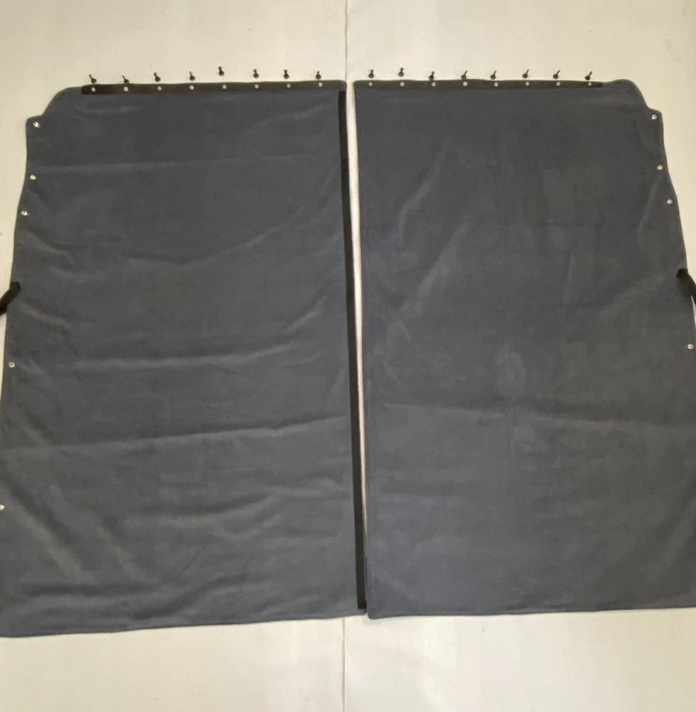 Freightliner Columbia / Century curtains. Left and right side. New. Faux leather black + grey velour. Clips included. Main curtain, Sleeper curtain, Privacy curtain. Made in USA FLAT TOP ROOF!!! Not MIDDLE ROOF! (See pictures please) If you need middle roof or high roof we have it. If you need another color or fabric let me know, we can do that.