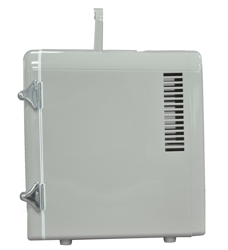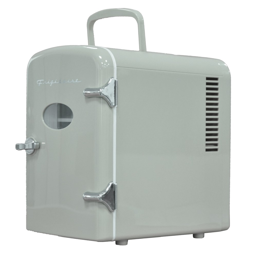 Experience the ultimate convenience and versatility with the Frigidaire Retro 6 Can Mini Beverage/Skincare Cooler. This compact powerhouse offers versatile storage, accommodating 6 cans or organizing your skincare essentials for a refreshing daily routine. With its portable design and carrying handle, you can take it anywhere and place it on any surface with ease. The heavy-duty construction ensures secure storage, while its furniture-friendly design eliminates worries of scratches. The convenient viewing window allows you to see what's inside without opening the door, and the easy-to-clean interior ensures effortless maintenance. Powered by a 110V wall outlet or a 12V car adapter, Indulge in the perfect blend of functionality and style with this exceptional mini fridge. Frigidaire Retro 6 Can Mini Beverage/Skincare Cooler, Moonbeam, 4L Accommodates up to 6 cans or 4L, providing ample space to keep your favorite beverages or snacks refreshingly chilled Store your moisturizers and beauty tools for a refreshing take on your daily skincare routine Compact and portable design with a convenient carrying handle for on-the-go use Features a heavy-duty locking latch and door hinge for secure closure Viewing window allows easy monitoring of contents Easy-to-clean, fully insulated interior ensures a hygienic storage environment Utilizes a thermoelectric cooling system for quiet, vibration-free, and efficient operation Powered by a 110V (AC) wall outlet, offering flexibility in usage locations Includes cords for both 12V car adapter and home outlet, providing versatile power options Engineered to chill beverages 26-28°F below the ambient temperature, with cooling efficiency varying based on the surrounding environment