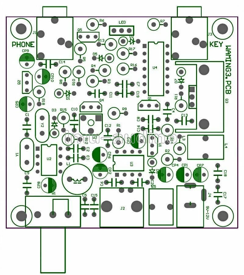 Note : it is diy kit , Need soldering by youself This is a very small volume of a simple 40 meter band micro-power amplitude telegraph transceiver, 9V square battery or external 9-12V DC power supply. Spread good time, and the nearby provinces hundreds of kilometers amateur radio communications. This machine was first introduced by domestic radio enthusiasts, but also it played a nice name "frogs". The frogs calling Kit 3.1 public version based combined with the actual usage Fixed several key issues, after several debugging before the formation of the current version. Key Indicators Power supply: 9V-12V (Recommended 12V linear regulated power supply) Antenna: 50 ohm, unbalanced Transmission power: 2W (9V Power), 3W (12V power) Frequency: transmitter local oscillator frequency: 7023 KHz; receive local oscillator frequency: about 7023-7026 KHz Operating mode: CW Use This machine is simple direct conversion transceiver interference, selectivity can be compared and the super heterodyne receiver, it is necessary to use not worse than the length of a half-wave dipole antenna, or communication is relatively poor. The selection disturbance is relatively small; spread the good opportunity for communication experiment, it is best to make an appointment with your friend’s communication. Communication distance of about 150-300 km more secure, to greater distance depends on the propagation environment and the operator's operating skills. If the broadcast interference is relatively large, use 5K GAIN potentiometer signal attenuation, emergent signal from the radio interference. Attenuation potentiometer is critical, carefully adjusted; you will receive an unexpected effect. In the dissemination of good times with of this machine FT80C goods shortwave radio with a signal on a distant contrast reception, this local effect is no difference between basic commodity machine, which makes unexpected. Recommendations for improvement 1N4001 replaced by appropriate varactor tube (recommended the 0P-100P), can increase the receive frequency range. Q1 9018 power between 0.8W ~ 1.2W 8050 power between 1.5W to 2W (select 8050 will make D882 In a critical state, need to be careful). Package Contents : Frog Sounds HAM Radio QRP diy Kit Telegraph CW Transceiver Receiver Radio Station V3 Contact us Return Policy Feedback Contact us For anything problem about product, price, shipping or order status, pleasecontact us via eBay message.Just contact us using the "Ask the seller a question" link on eBay. We expect positive feedback and 5 scores DSR from you. Return Policy We believe our items are so outstanding. We are convinced you will be happy with your Purchase. If you do not satisfy with our items. Please simply return to us within 30 Days in original condition. Just pay for the returned postage. Then we can issue full refund to you after the returned item arrived at our warehouse. Please include your eBay ID and item number with any email requests. Feedback * When you satisfied with our product and services please leave us positive feedback. * If you have got the package, please confirm "Delivery on time" For us. * If a problem occurs, contact us immediately with any email request. * Just contact us using the " Ask the seller a question" link on eBay. Your Satisfaction is our Priority. Our goal is to make all our customers as happy as possible while shopping with us.