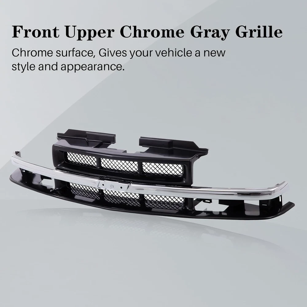 Store New Arrivals Add to Favorite View Feedback Contact Front Grille Grill with Chrome Center Bar Compatible with Chevrolet Chevy 1998-2004 S10 | 1998-2005 Blazer with Black Insert Description Material Plastic Item Weight 11.2 Pounds Color Chrome &Black Product Grade Replacement Part Material Type Plastic Manufacturer Part Number CPD-21-80532 Model Number CPD-CV832-1380CNF Vehicle Service Type Truck Item Weight 11.2 Pounds Installation Type Insert Compatible with Vehicle Type Truck Size Grille | w/Center Bar Item Fitment: Compatible With Chevrolet Chevy Blazer S10 Sport Utility Vehicle Standard Extended Cab Pickup 2005 2004 2003 2002 2001 2000 1999 1998 Xtreme SS Number: 12471853, GM1200413 Enhance Appearance: Front black grille assembly with black molding center bar and emblem provision, gives your vehicle a distinctive and stylish look, making it stand out on the road Durable: Boasting superior durability and outstanding impact resistance, it is the ideal material for off-road use Improve air circulation: It helps in directing the airflow to the engine compartment for better cooling and ventilation Protection: Protect the engine and radiator, acts as a barrier, preventing debris and large particles from entering and damaging the engine and radiator Product Description More Related Products Add to Cart Add to Cart Add to Cart Add to Cart Add to Cart Add to Cart Customer Reviews 5.0 out of 5 stars 3 5.0 out of 5 stars 3 5.0 out of 5 stars 1 4.7 out of 5 stars 105 4.7 out of 5 stars 105 4.7 out of 5 stars 105 Price $102.48 $ 102 . 48 $150.36 $ 150 . 36 $37.34 $ 37 . 34 $62.42 $ 62 . 42 $59.40 $ 59 . 40 $55.24 $ 55 . 24 Fitment 1998-2005 Chevy S10 / Blazer 1998-2005 Chevy S10 / Blazer 1998-2005 Chevy S10 / Blazer 1998-2005 Chevy S10 / Blazer 1998-2005 Chevy S10 / Blazer 1998-2005 Chevy S10 / Blazer For Modles w/o Holes For Bumper Strip w/o Holes For Bumper Strip w/LS Appearance Package w/LS Appearance Package w/LS Appearance Package w/o LS Appearance Package Featrue Black |w/o Molding Holes Black |w/o Molding Holes Black Strip With Holes Without Holes Without Holes Material Steel Steel Plastic Plastic Plastic Plastic Vehicle Location Front Center Front Center Front Front Lower Front Lower Front Lower ABOUT US We offer the best prices around on high quality products. Our E-store includes media such as books, movies, music and games while offering electronics, toys, sporting apparel, clothing, tools, general home, garden items and more. SHIPPING We are always working hard to ensure your package arrives as soon as possible. Please understand that some factors like weather, high postal traffic, and the performance of shipping companies are outside of our control. We offer free shipping to the lower 48 states and ship within 2 business days of payment, usually sooner. We do not accept P.O. Boxes. Please provide a physical address. For shipping outside of the continental USA, we only use eBay's Global Shipping Program.The item is shipped to KY and then sent to the rest of the world. International customers are responsible for all duties and taxes. Continue to check out in order to calculate costs for shipping the item to your country. Messages regarding eBay's Global Shipping Program MUST be directed at eBay EXCLUSIVELY. RETURNS We offer a 30-Day Return Policy on items which you are not completely satisfied with. You have the option for a full-refund or an exchange of the item. No returns are available on items shipped outside of the USA. PAYMENT We accept PayPal. CONTACT US This page content is yet to come Please ad us to your favorite seller and visit again later Thank You CUSTOMER SATISFACTION We try our very best to make sure every customer is completely satisfied. If there's a problem, message us! We're happy to help. WE ACCEPT Copyright © 2021 AutoDS. | All Rights Reserved