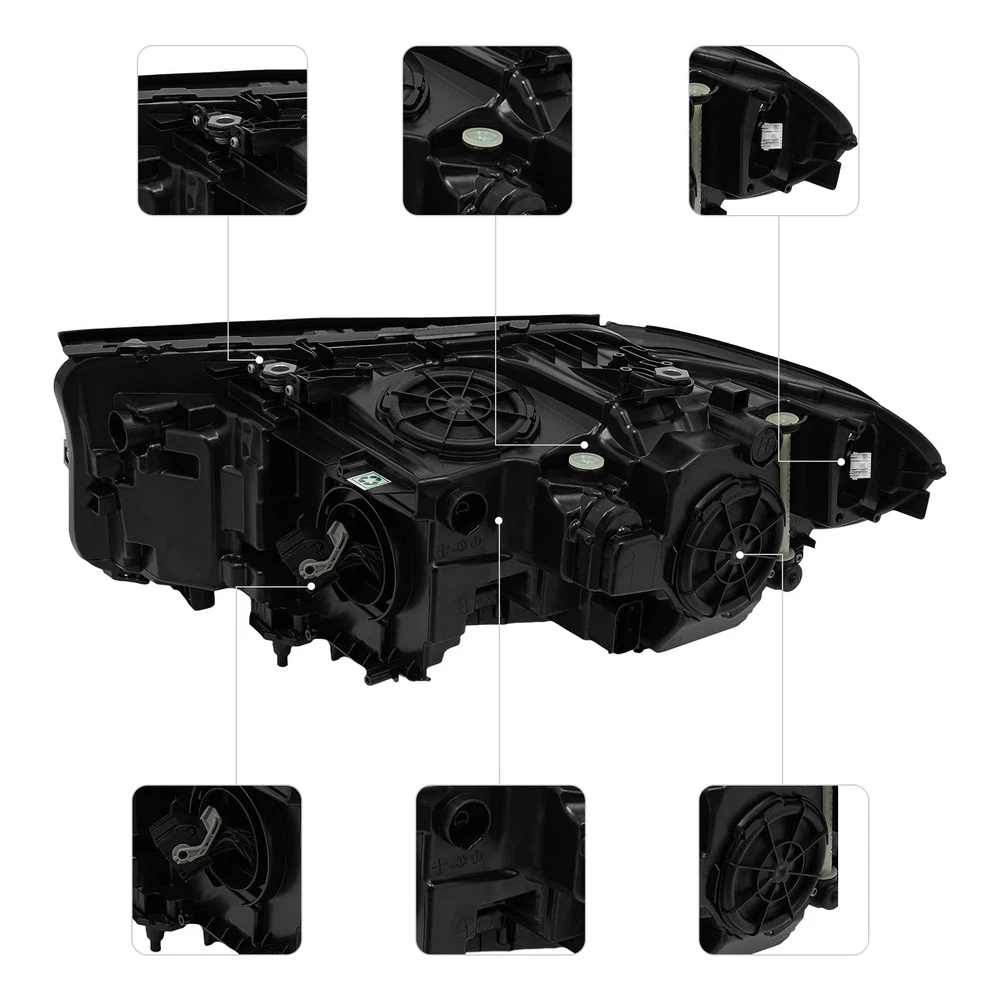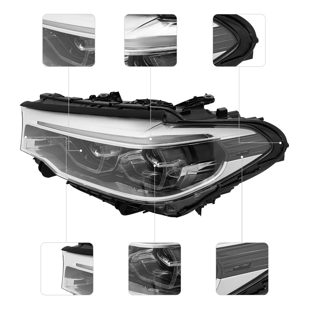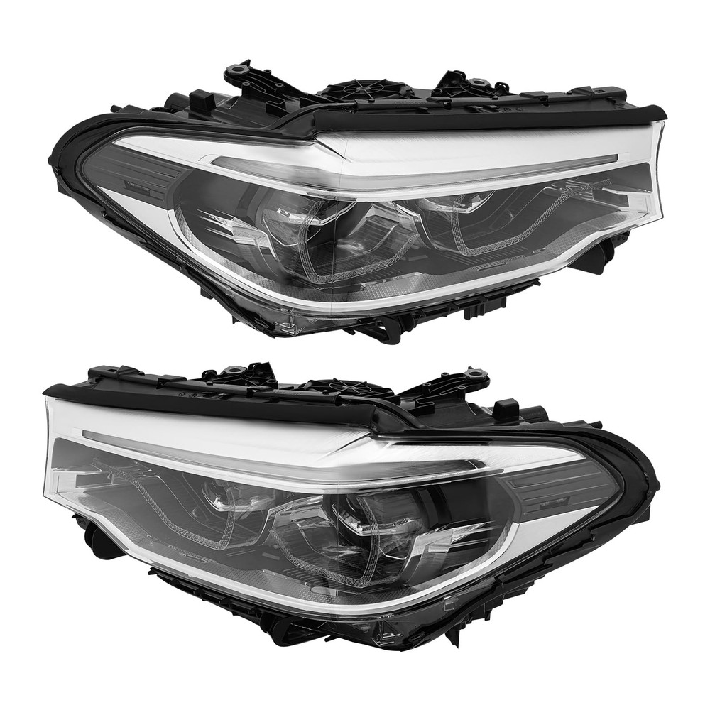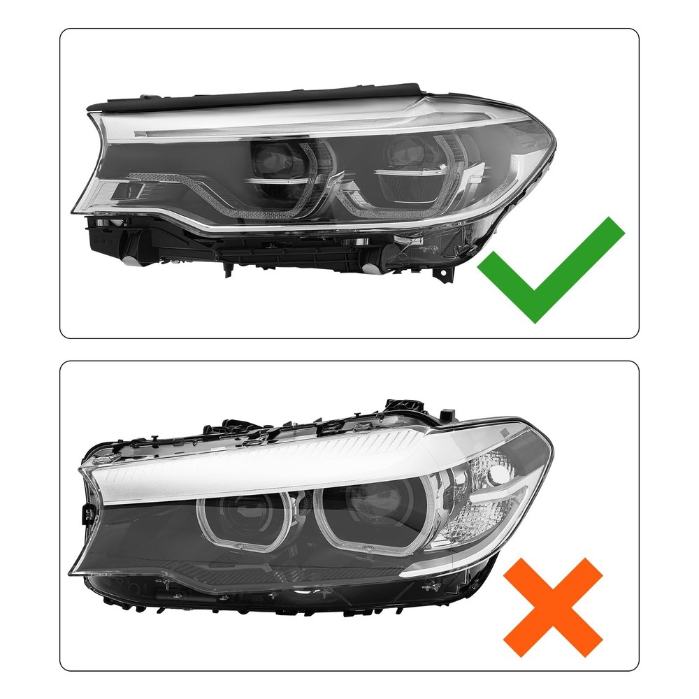 Front LED Headlights Assembly Left+Right Side for 2017-2020 BMW 5 M5 G30 G31 540i 550 w/LED DRL Driver&Passenger Head Lights Easy Installation Headlamps Assy Set (A Pair (Headlights)) About this item 1、100% Brand New in Box, Never Been Installed Before. 2、This Headlight Set is Compatible with 2017-2020 BMW 5 M5 G30 G31 540i 550 W/Factory Full LED Models Only Left+Right Side Headlights LED Headlamps. 3、Original fit and finish, The Upgraded Housing is Impact and Heat Resistant, Ensuring Better Durability Compared to Other Headlamps. Superior Lenses Have Good Light Transmission, High Toughness and Excellent Uv Resistance to Prevent Yellowing and Cracking. 4、High Quality Driver&Passenger Side Headlights Dot and Sae Stamped and Meets All Safety Requirements. 5、LED Headlamp Assembly Can Be Installed Directly, Plug and Play100% Brand New in Box, Never Been Installed Before.No Need to Install Additional Bulbs. Product Description Specifications OE Number: 63117214965 63117214966 Interchange Part Number: 63117214965, 7439197 63117214966, 7439198 Applicable Models: For 2017-2020 BMW 5 M5 G30 G31 540i 550 W/Factory Full LED Models Only Condition: New Housing Color: Black Lens Color: Clear Material: PC Process: Injection Moulding Placement on Vehicle: Front Way of Use: Easy Installation Type: Headlight Assembly Assembly Method: Closed Light Source Type: LED High Beam Type: Yes(Bulb Included) Low Beam Type: Yes(Bulb Included) Turn Signal Type: Yes(Bulb Included) Side Marker Lamp Type: Yes(Bulb Included) LED Daytime Running Light: Yes Voltage: 12V Number of Items: 2 Package Size: 70*39*36cm/27.56*15.35*14.17in Gross Weight: 6kg/13.23lbs Net Weight: 5.5kg/12.13lbs Key Features Good Compatibility: This product is a customized product, specially customized for the 2017-2020 BMW 5 M5 G30 G31 540i 550 W/Factory Full LED Models Only, so it can be compatible with the adapted models. Elevated Safety: The headlights not only enhance visibility for the driver in adverse weather conditions such as heavy rain, snow, and fog but also provide an early warning to approaching vehicles, thereby increasing overall safety on the road. Notes 1. Please carefully check compatibility before purchasing to ensure that the product is suitable. 2. We strongly recommend professional installation. 3. Please allow for slight color differences caused by shooting light and errors caused by manual measurement, and make sure you don't mind before ordering. If you have any questions, please contact us, and we will reply and solve your problem as soon as possible. Fits (As a Reference) For 2017-2020 BMW 5 M5 G30 G31 540i 550 W/Factory Full LED Models Only OE Number: 63117214965 63117214966 Package Included 1*Left Headlight 1*Right Headlight