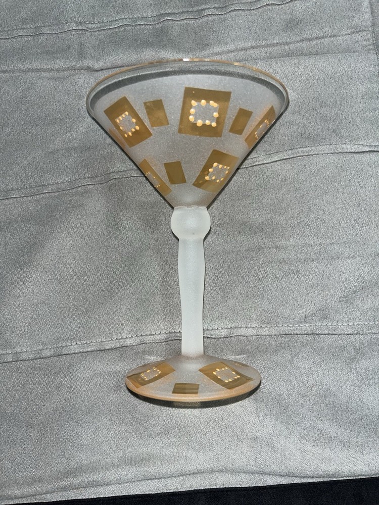 - 2 frosted glass martini glasses - One orange design - One purple design - In perfect condition, never used - From super-clean, nonsmoking, pet-free home