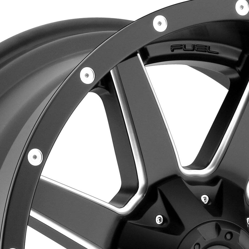 CARiD Accessories CARiD Wheels & Tires CARiD Auto Parts Semi Truck Motorcycle Powersports RV / Camper Boating Recreation Tools WHEELS & TIRES Interior Exterior Lighting Audio Wheels Tires Performance Repair Body Automotive Tools Fuel D538 MAVERICK Wheels 18x9 (1, 8x165.1, 125.1) Black Rims Set of 4 Part Number: D53818908250 ● In Stock: Ships in 3 days Authorized Dealer: Lowest Prices. On the go Daily Deals Guaranteed Fitment. Always the correct part In-House Experts. We know our products Our Newsletter: Product Details Product Details D538 MAVERICK Matte Black with Milled Accents Wheels by FUEL®. 18" x 9", +1 Offset, 8x165.1 Bolt Pattern, 125.1mm Hub. These astonishing monoblock wheels would fit someone who is looking for strength, performance, and style. Made from just one piece of metal using leading-edge equipment, these wheels guarantee maximum durability. They feature an exceptionally stiff construction and technical perfection. Plus, the wheels are designed to deliver remarkable operation both on the streets and trails. D538 MAVERICK Matte Black with Milled Accents Wheels by FUEL®. 18" x 9", +1 Offset, 8x165.1 Bolt Pattern, 125.1mm Hub. These astonishing monoblock wheels would fit someone who is looking for strength, performance, and style. Made from just one piece of metal using leading-edge equipment, these wheels guarantee maximum durability. They feature an exceptionally stiff construction and technical perfection. Plus, the wheels are designed to deliver remarkable operation both on the streets and trails. Notes: Once Tires are mounted onto Wheels, the wheels become Non-Returnable Lip Size, Concavity and overall Appearance, may vary depending on Vehicle and Wheel Size Specifications: Brand: FUEL Product Model: D538 MAVERICK Size: 18"x9" Color: Matte Black with Milled Accents Part Number: D [phone hidden] Rim Diameter: 18" Rim Width: 9" Bolt Pattern: 8x165.1 Offset: 1 Hubbore: 125.1 Lug: 8 PCD: 165.1 Beadlock: No Off Road use only: No Custom Finish option: No Designed for Dually Truck: No Load Rating: 3700 lbs Frontspacing: 4.96 Backspacing: 5.04 Bolt Pattern (inches): 8x6.5" Weight: 35 lbs UPC: [phone hidden]98 Finish: Matte Manufacturing: Cast Construction: 1PC / Monoblock Material: Aluminum Spoke Style: I-spoke Lugs type: Covered Lugs Features: Rigid construction, high-end look, and exquisite style Fabricated from solid materials resistant to impacts Provide epic performance with zero compromise Operate exceptionally well both on trails and highways These tires are a good combo if you love doing street and trail riding. Built trail-tough yet also engineered for daily driving duties, the Fuel Off-Road 1-piece line is a true "no excuses" upgrade. The tires are machined from one integral piece to provide uncompromising strength and guarantee absolute value. What are you waiting for? You really can’t go wrong with the exciting range of Fuel Off-Road 1-piece wheels. Good looks, competitive prices, and a vast range of styles and applications. Choose the ones to your preference and elevate your driving experience. Regardless of what styles or sizes you're interested in, the one thing you can depend on to come with every wheels or wheels and tires order is the best buying experience in the business. From fitment help from our in-house wheel experts to shipping packages certified by UPS, we'll take care of you and your order every step of the way. We know how much of a financial investment you're making in a set of wheels or wheels and tires, and in return we'll deliver service and product that is second to none. We take pride in our fitment information and don't take our fitment guarantee lightly. You can depend on the fitment advice from our professionals because they have decades of knowledge and experience to draw from. Research the brands of equipment we use and the wheel accessories we offer and you'll find they're the finest in the industry, because we want you to have the best. The combination of products and services we provide cannot be matched, especially by a local tire store. Product Video About Us About Us No matter whether you're doing basic repairs and maintenance, modifying your car's street appeal and performance, or adding high-tech lighting and electronics, our great selection of brand name products and knowledgeable associates will ensure success with all your automotive projects. Our Mission We offer the finest and widest variety of automotive parts and accessories using state-of-the-art technologies, and employ the most dedicated and creative team members. These individuals focus on exceeding expectations of customers who want the exact component at the best price in the quickest time. Our goal is to provide a WOW experience during every customer interaction. Whatever you need, whether it's a replacement part to fix a broken down vehicle, a crash part to repair a vehicle from an accident, perhaps a new set of custom wheels and tires, or something to make it flashy or faster, lifted or lowered, we will be your one-stop shop. We fulfill our mission daily with enthusiasm and optimism, learning from our ongoing opportunities and successes. We enjoy a modern yet tricked out work atmosphere while ensuring a true learning environment to develop our people. All manufacturer names, symbols, and descriptions, used in our images and text are used solely for identification purposes only. It is neither inferred nor implied that any item sold by CARiD is a product authorized by or in any way connected with any vehicle manufacturers displayed on this page. Copyright © 2003-2025 CARiD. All rights reserved.