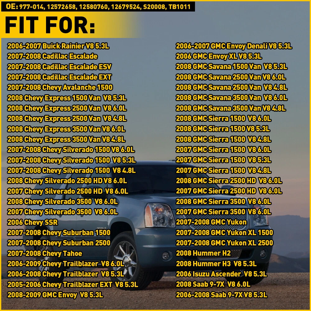 Fuel Injection Throttle Body Fitment: For Buick | 2006-2007 Buick Rainier V8 5.3L For Cadillac | 2007-2008 Cadillac Escalade 2007-2008 Cadillac Escalade ESV 2007-2008 Cadillac Escalade EXT For Chevy | 2007-2008 Chevy Avalanche 1500 2008 Chevy Express 1500 Van V8 5.3L 2008 Chevy Express 2500 Van V8 6.0L 2008 Chevy Express 2500 Van V8 4.8L 2008 Chevy Express 3500 Van V8 6.0L 2008 Chevy Express 3500 Van V8 4.8L 2007-2008 Chevy Silverado 1500 V8 6.0L 2007-2008 Chevy Silverado 1500 V8 5.3L 2007-2008 Chevy Silverado 1500 V8 4.8L Astoffical Fuel Injection Throttle Body Assembly For 2008 GMC & Savana 1500 GMC Sierra 1500 Fuel Injection Throttle Body Fitment: For Buick | 2006-2007 Buick Rainier V8 5.3L For Cadillac | 2007-2008 Cadillac Escalade 2007-2008 Cadillac Escalade ESV 2007-2008 Cadillac Escalade EXT For Chevy | 2007-2008 Chevy Avalanche 1500 2008 Chevy Express 1500 Van V8 5.3L 2008 Chevy Express 2500 Van V8 6.0L 2008 Chevy Express 2500 Van V8 4.8L 2008 Chevy Express 3500 Van V8 6.0L 2008 Chevy Express 3500 Van V8 4.8L 2007-2008 Chevy Silverado 1500 V8 6.0L 2007-2008 Chevy Silverado 1500 V8 5.3L 2007-2008 Chevy Silverado 1500 V8 4.8L 2008 Chevy Silverado 2500 HD V8 6.0L 2007 Chevy Silverado 2500 HD V8 6.0L 2008 Chevy Silverado 3500 V8 6.0L 2007 Chevy Silverado 3500 V8 6.0L 2006 Chevy SSR 2007-2008 Chevy Suburban 1500 2007-2008 Chevy Suburban 2500 2007-2008 Chevy Tahoe 2006-2009 Chevy Trailblazer V8 6.0L 2006-2008 Chevy Trailblazer V8 5.3L 2005-2006 Chevy Trailblazer EXT V8 5.3L For GMC | 2008-2009 GMC Envoy V8 5.3L 2006-2007 GMC Envoy Denali V8 5.3L 2006 GMC Envoy XL V8 5.3L 2008 GMC Savana 1500 Van V8 5.3L 2008 GMC Savana 2500 Van V8 6.0L 2008 GMC Savana 2500 Van V8 4.8L 2008 GMC Savana 3500 Van V8 6.0L 2008 GMC Savana 3500 Van V8 4.8L 2008 GMC Sierra 1500 V8 6.0L 2008 GMC Sierra 1500 V8 5.3L 2008 GMC Sierra 1500 V8 4.8L 2007 GMC Sierra 1500 V8 6.0L 2007 GMC Sierra 1500 V8 5.3L 2007 GMC Sierra 1500 V8 4.8L 2008 GMC Sierra 2500 HD V8 6.0L 2007 GMC Sierra 2500 HD V8 6.0L 2008 GMC Sierra 3500 V8 6.0L 2007 GMC Sierra 3500 V8 6.0L 2007-2008 GMC Yukon 2007-2008 GMC Yukon XL 1500 2007-2008 GMC Yukon XL 2500 For Hummer | 2008 Hummer H2 2008 Hummer H3 V8 5.3L For Isuzu | 2006 Isuzu Ascender V8 5.3L For Saab | 2008 Saab 9-7X V8 6.0L 2006-2008 Saab 9-7X V8 5.3L Specifications: OE: 977-014, 12572658, 12580760, 12679524, S20008, TB1011 Features: Function Regulate the flow of air into the engine, which is crucial to the fuel and air mixture for the engine. High-quality Made of superior quality to ensure its long service life and durability. Perfect replacement It is perfect replacement parts, the installation, work efficiency and appearance of your vehicle are the same compared with your original one. Note Some problems may exist in the throttle body assembly if the engine stalls or fails to start, the warning lights come on, etc. Packaging include: 1X Throttle Body Item Specifics Brand Unbranded Type Throttle Body Items Included Throttle Body Features Durable Manufacturer Part Number XPD-JQM-64114 OE/OEM Part Number 977-014, 12572658, 12580760, 12679524, S20008, TB1011 Color Silver Manufacturer Warranty 2 Years Throttle Body Actuation Type Electric Universal Fitment No Fitment Fits For Buick,Cadilalc,Chevy,GMC,Hummer.etc Connector 6-Blade Packaging include Throttle Body*1 Throttle Body Mounted Yes Material Aluminum Fitment Type Direct Replacement Surface Finish High Quality Material Placement on Vehicle Front Number Of Pieces 1 Surface Finish High Quality Material Placement on Vehicle Front Number Of Pieces 1 Payment We accept payment such as credit, debit, and gift cards; Apple Pay, Google Pay, PayPal, and PayPal Credit etc. We only ship to the confirmed shipping address given with the payment. If you want to ship to other address, please change your shipping address before you make payment. To avoid initiating an unpaid item claim, please pay within 7 days. Shipping Domestic(U.S.) Shipping All items will be shipped out within 1 business days with cleared payment. Please included your phone number to the payment note for prompt and secure shipment. Tracking numbers for all orders are added to eBay once they have been dispatched; please login to eBay to find the tracking information for your order. Most items are shipped USPS first class mail, delivery usually takes just 3-5 business days. Additionally, we do not ship on weekends. International Shipping Puerto Rico: As we use standard USPS, PR is considered a US territory for mailing purposes, and can be selected as such at checkout. Shipping will be domestic U.S. rates. Returns Policy For U.S. and Puerto Rico Customers: We offer free returns with any orders within 60 days from the date of delivery. No restocking fees, no administrative fees, no return shipping fee, and no hassle! We will email you when a prepaid return label is ready to download from your ebay account. You just have to print it out and drop the package off at a USPS facility. When we get it back, you will be notified and credited for the full price of the items/products that are returned. Since the shipping fees go directly to the delivery service, we are not able to refund any shipping costs. For warranty returns passed the 60 days, please call or email us so we can make sure we are providing you with the best possible support. 1.Please contact us with emai first if you have any questions with our products . 2.Refund will be sent after we got your returned package. 3.All returned items should be in the original packaging with tracking number. Contact Us If you have ANY questions with shipping, product or service, please Contact Us first before leaving feedback/write a review or filing a return case. We will solve the problem! We always put our customers first and your satisfaction is guaranteed. Our AUXITO After-sales team are here to serve you. Email us via ebay message and our After-sales team will swiftly diagnose the issue and offer the best solution within 12-24 business hours.