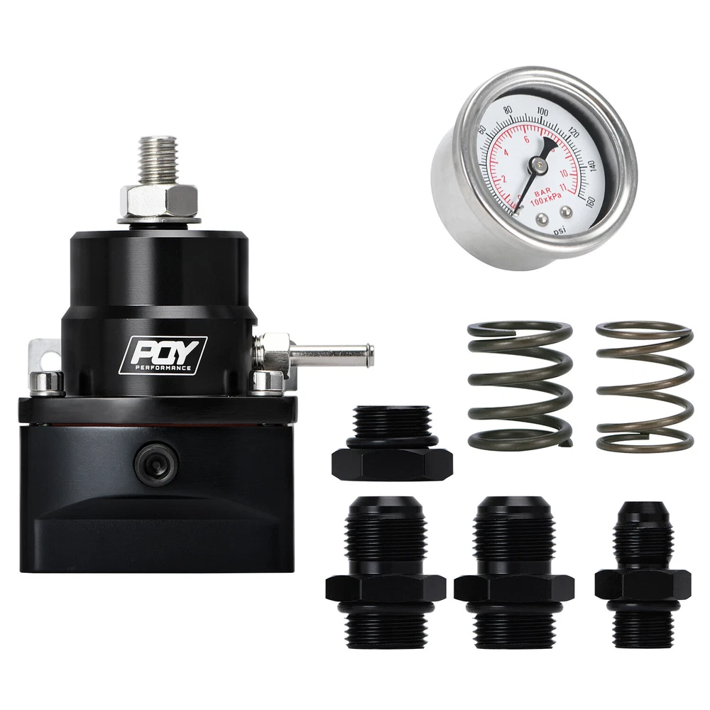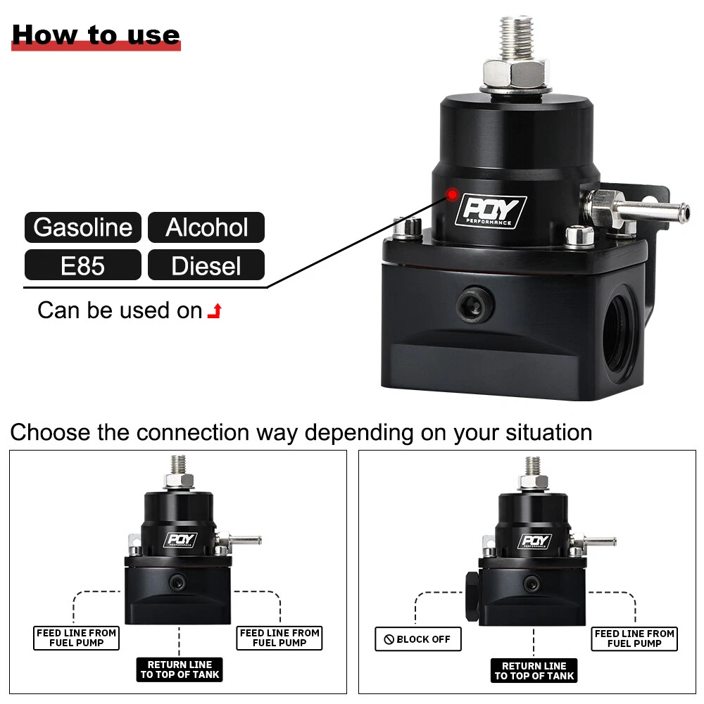 Fuel Injected Fuel Pressure Regulator w/ boost reference Gauge AN6 Hose Fitting Condition Color 100% Brand New As the picture Description: Feature : Adjustable from 3-70psi.(You need to replace the spring inside of the top if you need other psi which is out of the range, we provide three ranges of 3-20psi, 20-45psi which is pre-install, 45-70psi). Function : Adjust fuel injection volume appropriately to keep the stable pressure in the fuel system, saving fuel consumption. 3 Types Of Pressure Springs: 3-20psi, 20-45psi, 45-70psi (suitable springs can be replaced as you needed, and the pressure of the springs can be adjusted by adjusting the knob of the regulator). Tips : If your fuel pressure requirement is between 20 to 45 psi, the factory installed regulator spring is the proper spring. Tips : If your fuel pressure is required to be between 3-20 psi or 45-70 psi, insure the pressure adjustment set screw is backed out all the way, remove the 4 cover screws and cover, remove the factory installed spring, replace it with a suitable spring, and reassemble the regulator. What You Get : 1x fuel pressure regulator, 1x gauge, 2x -8AN fittings for feed and supply lines,1x -6AN return line fitting,1x AN8 end cap, 3x pressure springs(you can cap off one feed if you only need 1 feed). Material : CNC-machined with aluminum billets, sturdy, resistant to high pressure and high temperature, not prone to rusting, and prolonging service life. Specification: Fitment Universal, can be used with E85 or alcohol. Package Includes: 1x fuel pressure regulator, 1x gauge, 2x -8AN fittings for feed and supply lines, 1x -6AN return line fitting, 1x AN8 end cap, 3x pressure springs NOTE: Provide a tracking number with every order, please buy with confidence! Please allow differences due to manual measurement. No installation guides are included, we highly recommend seeking professional installation. The color of the actual items may be slightly different from the listing images due to different computer screens. For any inquiries, please write to us. 💯After-Sales Shipping🚚 💰Payment Q & A💬 Contact Us📧 💯After-Sales For any installation or usage issues, please send us photos or videos for assistance. If you are unsatisfied, please contact us before leaving feedback. We are committed to resolving any issues and ensuring customer satisfaction. We offer free returns and exchanges within 30 days of purchase. If you need to return an item, please select "didn't like them" as the reason to ensure prompt processing. Thank you! Shipping🚚 We ship your order within 2 business days of receiving full payment. Delivery typically takes 3-7 business days to most cities. Domestic orders are shipped via USPS, UPS, or FedEx from our US warehouse and usually arrive within 3-5 business days. We ship to the address on your eBay account, not your PayPal account. Please update your eBay shipping address during checkout if it's different. We provide a tracking number for online shipment status updates. 💰Payment PayPal is the preferred payment method. Orders will be shipped after payment clears. Payment is expected within 7 days; otherwise, an Unpaid Item Dispute will be filed with eBay. Q & A💬 Q: When will the item be shipped out? A: This item will be shipped within 2 business days once payment is completed. Q: Where is my tracking number? A: Please log in to your account, click "my eBay"-->"my summary", or open your email box and find the shipping notification email. Q: How do I return an item? A: Our store accepts returns. Items must be returned within 60 days. Refunds will be given as money back. Please contact our customer service before you return an item. Contact Us📧 If you have any questions, please contact our Customer Service Team by clicking "Contact seller" in "Seller information". Emails will reply within 1 business day during business hours.