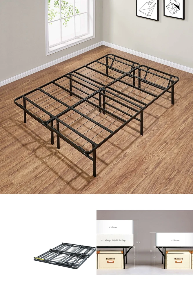 Full-Size Platform Bed Frame Metal Heavy Duty 14 Inch Mattress Steel Foundation Securely support your mattress with the innovative and durable design of Mainstays High Profile Foldable Steel Bed Frame. This everyday steel bed frame offers a quick, sturdy frame option in a pinch and even allows for under the bed storage with its 14" height. Made from premium quality steel, this Mainstays metal platform bed frame features a powder-coated steel finish and uniquely uses a reliable mesh platform that takes the place of a box spring, saving you money and the hassle of placing both a mattress and boxspring. Designed with a safe locking button, Mainstays High Profile Foldable Steel Bed Frame is fully foldable allowing you to easily store under a couch to use for guests and is very easy to take with you on a variety of trips. Ultra easy to assemble, Mainstays 14" High Profile Foldable Steel Bed Frame can fit inside most standard bed frames and includes capped feet to ensure you never sustain damage to your floors from sharp, jagged metal. Whether as a permanent bed frame in a teen or bedroom or as a guest bed, you and your family are sure to appreciate the durable, sturdy design of this High Profile Foldable Steel Bed Frame from the home experts at Mainstays. Mainstays 14" High Profile Foldable Steel Bed Frame, Powder-coated Steel with under bed storage, Easy Assembly. • Durable steel construction to stand up to wear and tear • Featuring a classic powder-coated black steel finish • Eliminates the need for a box spring - for use with just a mattress • Features a button locking system that keeps the bed fully sturdy, allows the frame to fold away for easy storage and transport • Designed with capped feet to ensure no damage occurs to your floor • Easy, quick set-up, No Tools Required • Fits inside most standard bed frames • Ideal for use in a guest bedroom, child or teen bedroom, or in your master bedroom Assembled Product Dimensions: • Full: 75"L x 54"W x 14"H (1200 lb. weight capacity) Shipping We ONLY ship to the lower 48 contiguous United States only. We do not ship to P.O. Boxes or APOs We provide FREE Expedited Shipping on most items Orders are usually processed within 24 hours but please allow up to four days You will be notified via eBay messages as soon as your items ship Items can only be shipped to the address provided at time of purchase Returns, Cancelations, and Payment We offer a 30 day return policy. Returned items must be in all of the original packaging and include all of the original accessories or items that came with it. The item and package should be in original condition. Orders cannot be canceled once they are processed - Please be certain before clicking the buy button. FeedBack Your feedback very important to us, after you get your package and you are satisfied with our service please leave us positive feedback If you have any problem with your purchase please contact us first! We will do everything we can to make certain that you are completely satisfied ! Customer satisfaction is our top priority For any questions, use eBay contact system Please visit our eBay store to check out other items for sale! Thank you for shopping at our store.