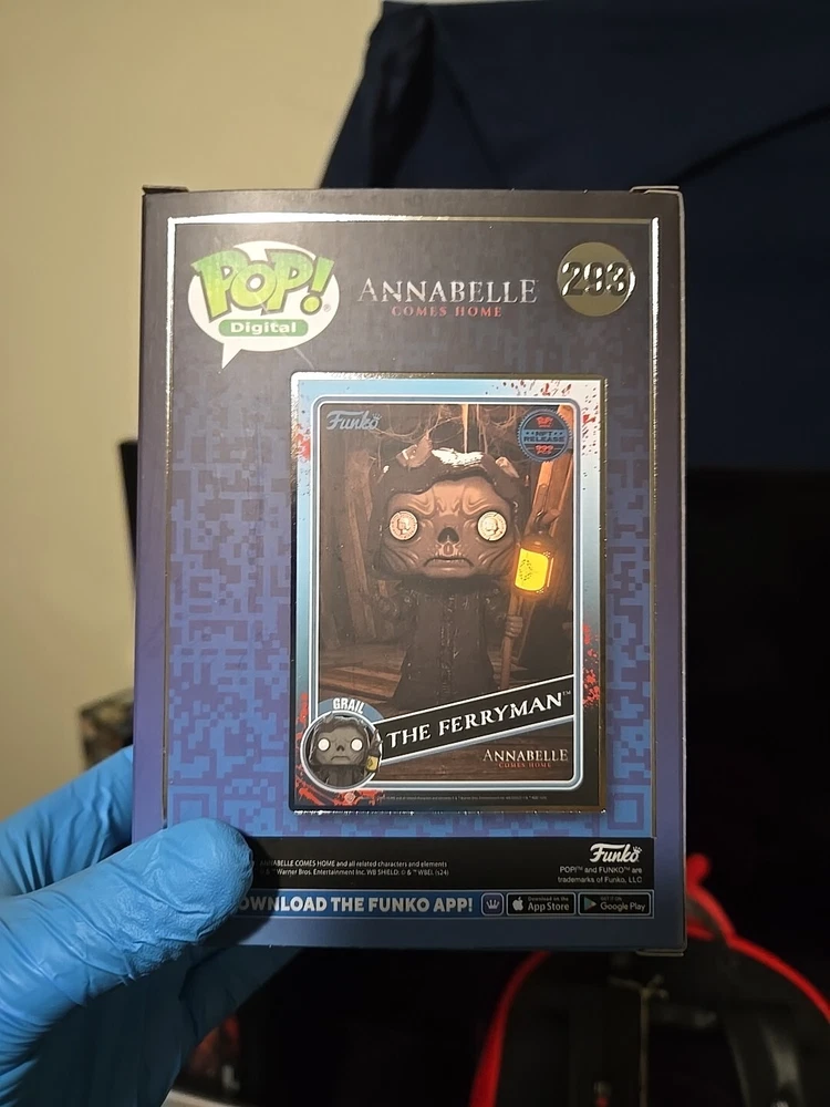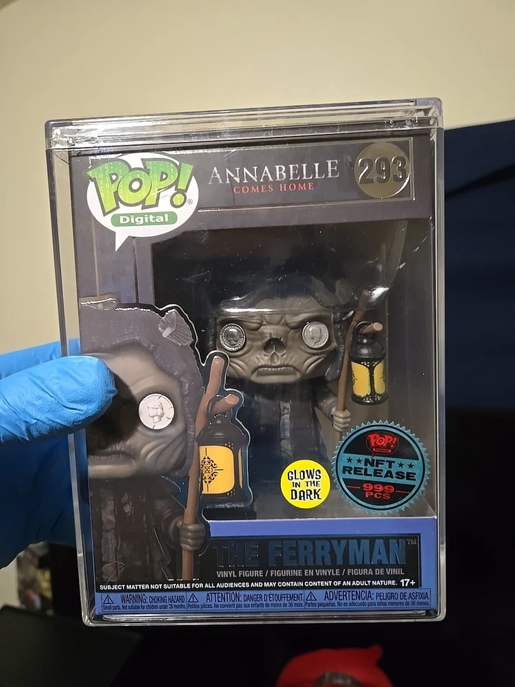This Funko Digital POP! vinyl figure features The Ferryman from the WB Horror Series 2. With its limited edition and exclusive event/retailer status, this item is a must-have for any Annabelle or horror movie fan. The figure is made of vinyl material and comes in its original packaging, unopened and with a protector. In addition, this figure is part of the Pop! series and has a box number of 293. It also features a glow-in-the-dark effect, making it a unique addition to any collection. Whether you're a collector or just looking for a unique gift, this Funko Digital POP! vinyl figure is sure to impress.