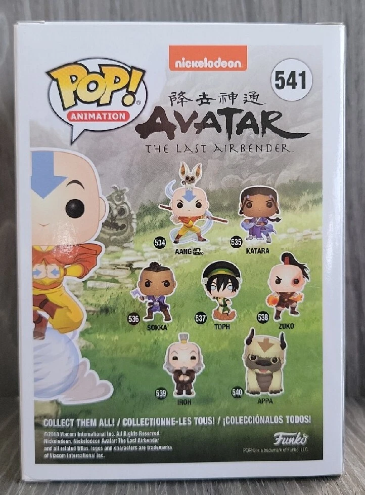 Exclusive Event/Retailer:Hot TopicBrand:FunkoBox Number:541Collection:AnimationModel:Pop AvatarSeries:Avatar The Last AirbenderSize:StandardType:Vinyl FigurePackaging:Original (Unopened)Material:VinylProduct Line:PopFranchise:AvatarFeatures:Exclusive, Vaulted, With ProtectorTV/Streaming Show:Avatar: The Last AirbenderCharacter:Avatar, Avatar Aang, Aang
