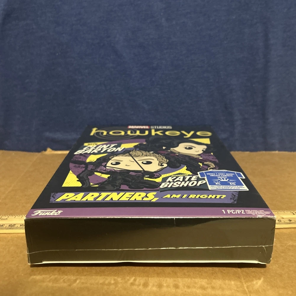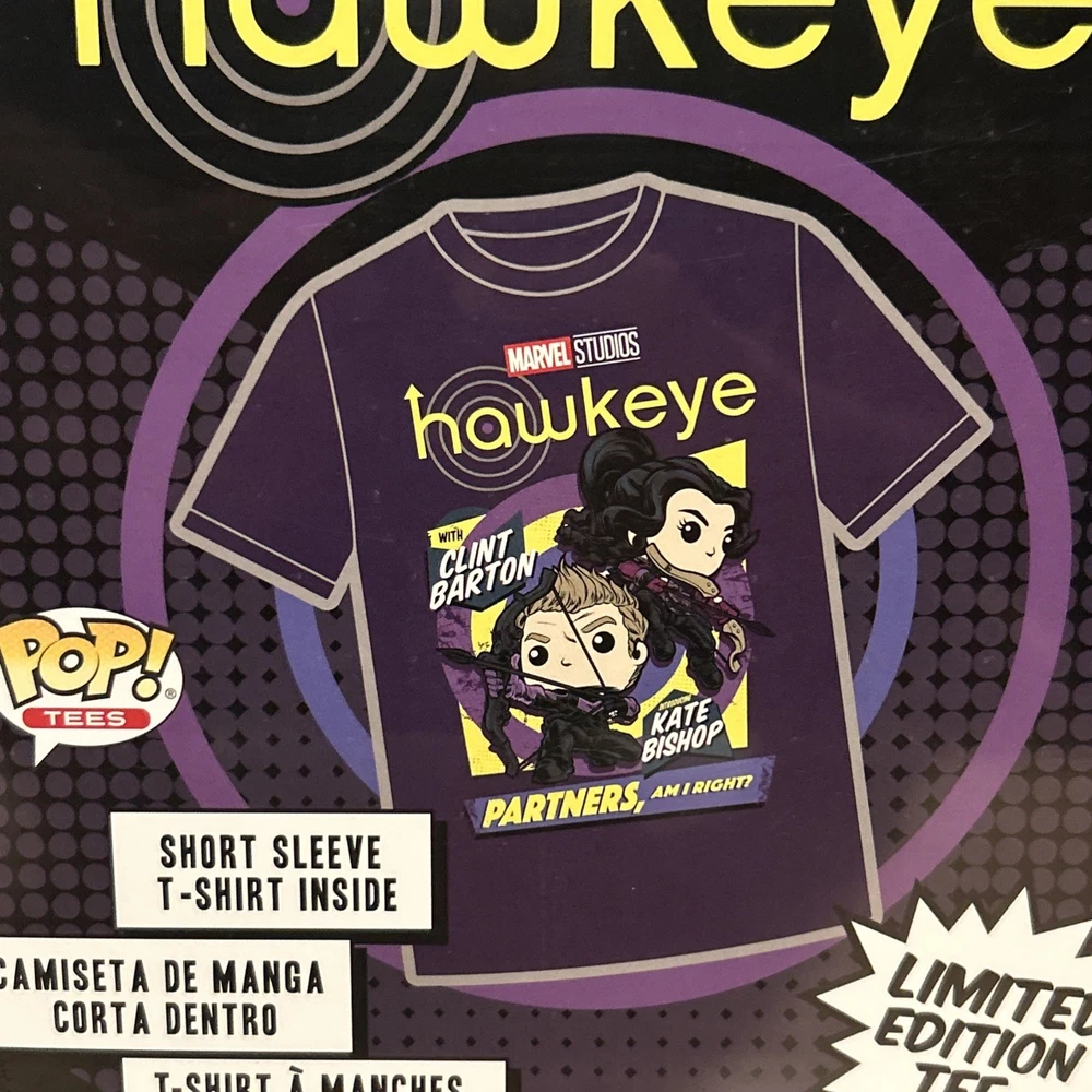 This limited edition Funko Pop! TEES Hawkeye T-shirt is a must-have for any Marvel Studios fan. The shirt features a vibrant multicolor design with the iconic Hawkeye character. Made from 100% cotton, this unisex T-shirt is perfect for everyday wear and all seasons. With its short sleeves and comfortable fit, this XL size T-shirt is a great addition to any wardrobe. Whether you're a Marvels Avengers enthusiast or just love the Hawkeye character, this T-shirt is a great choice. Get yours today and show off your love for Marvel Studios!