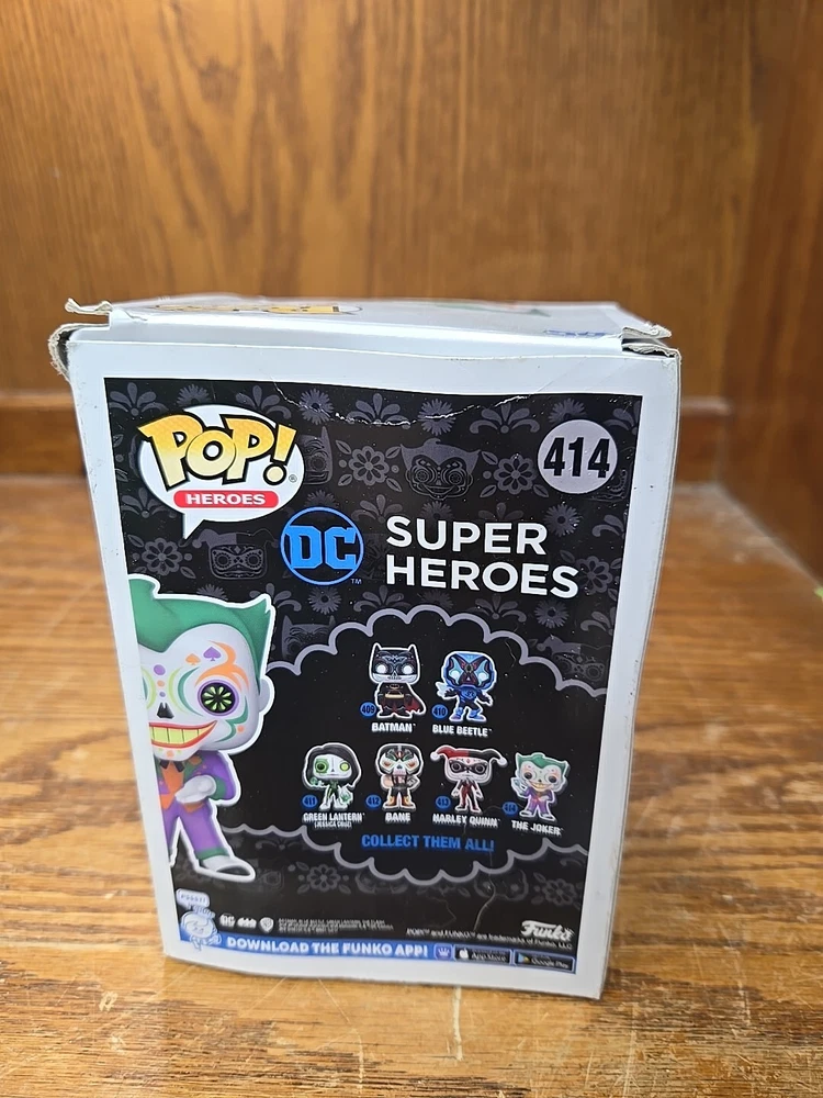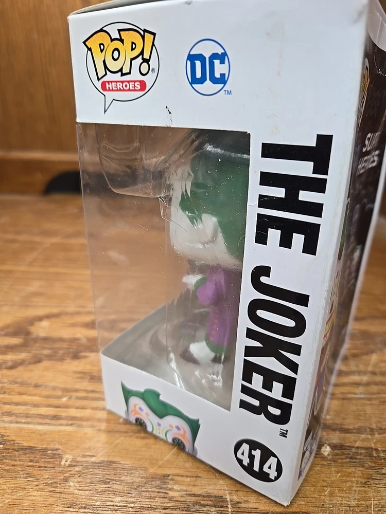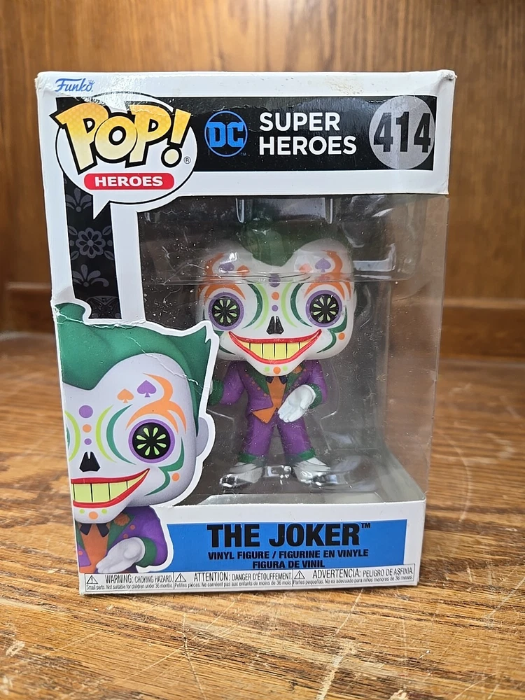 This Funko Pop! Vinyl figure is a must-have for any fan of DC Comics and the Joker. The figure, numbered 414 in the Dia De Los DC series, comes brand new and in its original box. The vinyl figure stands at approximately 3.75 inches tall and features the iconic Joker character in his signature purple suit and green hair. This collectible item is perfect for display or as a gift for any fan of comics or boxing. If there is any issue with the item upon arrival, please let me know before leaving feedback as I strive for great customer service. Message me for any questions. From a pet and smoke free home. I can offer discounted combined shipping on multi-quantity orders! Thank you for visiting my Ebay store.