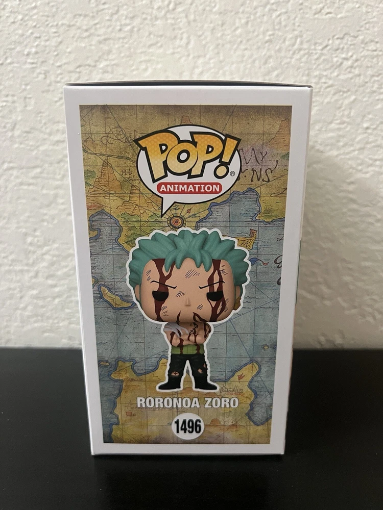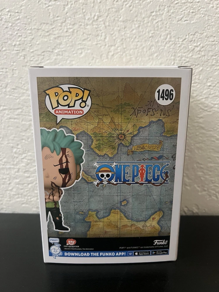 This Funko Pop! Vinyl figure features Roronoa Zoro from the popular anime and manga series One Piece. The figure stands at approximately 3.75 inches tall and is made of vinyl material. It comes in its original packaging, unopened and ready for display. This exclusive Hot Topic item is part of the One Piece 2023 Q4 series and has a box number of 1496. Perfect for collectors and fans of the franchise, this Pop! Vinyl figure is a must-have addition to any collection.