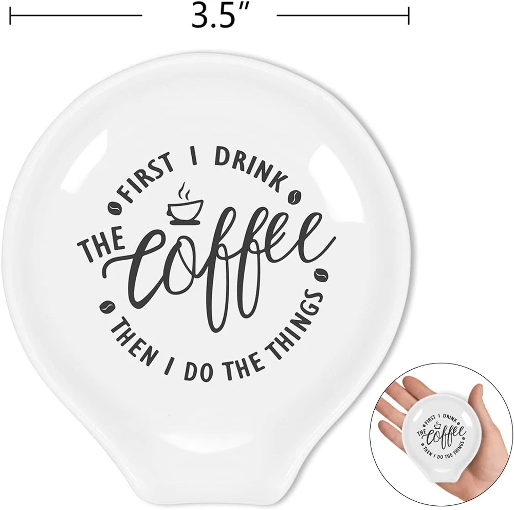 Store New Arrivals Add to Favorite View Feedback Contact Fast deliveries to the customer's home Quality customer service John Make the customers happy! Funny Coffee Quote First I Drink the Coffee Then I Do the Things Ceramic Coffee Spoon Holder-Coffee Spoon Rest -Coffee Station Decor Coffee Bar Accessories-Coffee Lovers Gift for Women and Men Description Unique design: this special design of this interesting coffee spoon holder is suitable for family and office use and coffee lovers' decorative ideas. Size:3.9'' x 3.3'' x 0.78'' Special gift: this coffee spoon holder is the best gift for coffee lovers. It will be the best gift for Birthday, Christmas, Thanksgiving, Mother's day, or Housewarming. High quality: spoon holder is made of high quality ceramics, durable, smooth surface, easy to clean. If you are not satisfied with the product, please feel free to contact us, we will reply in time. Product Description Clear Printing High quality printing materials and reasonable printing design can maintain clarity even after long-term use and storage. Thoughtful & Practical Design The small opening in the spoon wall and the raised edge design at the around are simple and ingenious. The small curved opening provides a unique aesthetic while preventing the utensils from rolling away. Ceramic Material Ceramic materials have excellent wear resistance and due to their high hardness.They can resist wear and scratches, making them highly practical. Color ZJ1190 Pattern Letter, Cartoon Product Dimensions 3.5"L x 3.5"W Material Ceramic Is Dishwasher Safe Yes Item Weight 3.84 ounces Finish Type Polished Material Type Free Plastic Free ABOUT US We offer the best prices around on high quality products. Our E-store includes media such as books, movies, music and games while offering electronics, toys, sporting apparel, clothing, tools, general home, garden items and more. SHIPPING We are always working hard to ensure your package arrives as soon as possible. Please understand that some factors like weather, high postal traffic, and the performance of shipping companies are outside of our control. We offer free shipping to the lower 48 states and ship within 2 business days of payment, usually sooner. We do not accept P.O. Boxes. Please provide a physical address. For shipping outside of the continental USA, we only use eBay's Global Shipping Program. The item is shipped to KY and then sent to the rest of the world. International customers are responsible for all duties and taxes. Continue to 'check out' to calculate costs for shipping the item to your country. Messages regarding eBay's Global Shipping Program MUST be directed at eBay EXCLUSIVELY. RETURNS We offer a 30-Day Return Policy on items in which you are not completely satisfied with. You have the option of a full-refund or an exchange of the item. No returns are available on items shipped outside of the USA PAYMENT We accept PayPal. CONTACT US This page content is yet to come Please ad us to your favorite seller and visit again later Thank You CUSTOMER SATISFACTION We try our very best to make sure every customer is completely satisfied. If there's a problem, message us! We're happy to help. WE ACCEPT