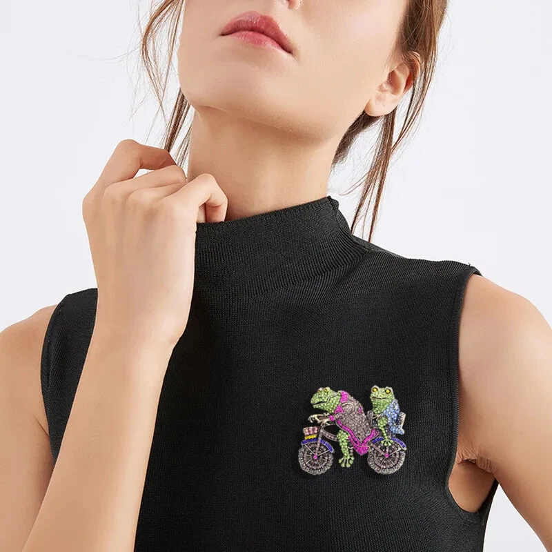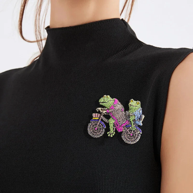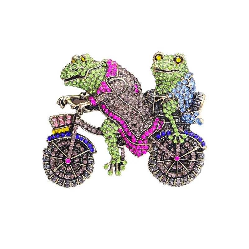 Funny Cycling Frog Brooch Creative Toad Pin Vintage Animal Brooches Accessories