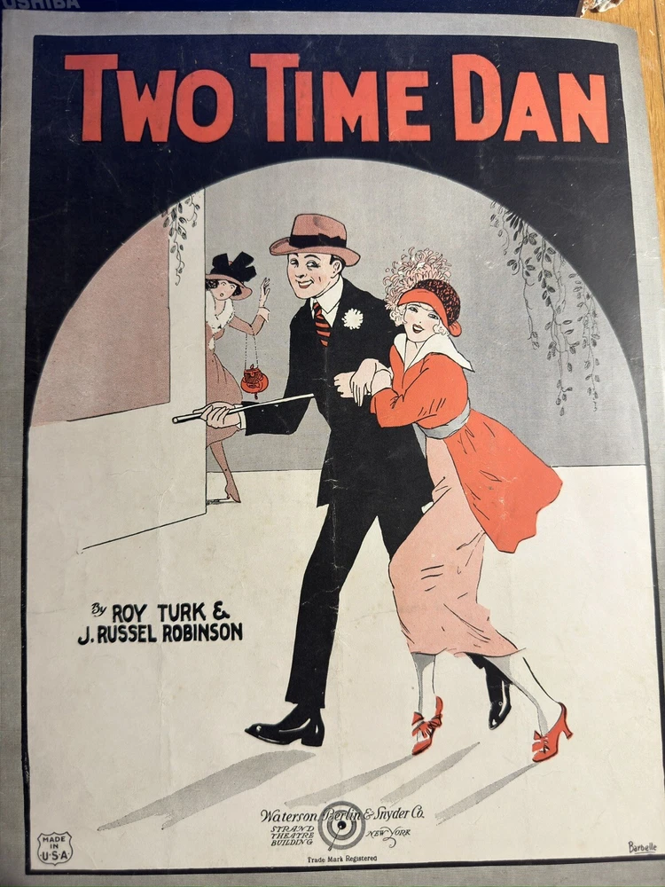 This vintage sheet music from 1923 contains the beloved ragtime tune "Two Time Dan" by J. Russel Robinson. It is perfect for advanced violinists who enjoy playing musicals. The format is sheet music and the genre is ragtime, a popular style of music in the early 1900s. This item is a great addition to any music collection and is perfect for those who appreciate vintage and antique sheet music. It falls under the category of Musical Instruments & Gear and Sheet Music & Song Books. Get ready to enjoy playing this classic tune and relive the heyday of ragtime music!